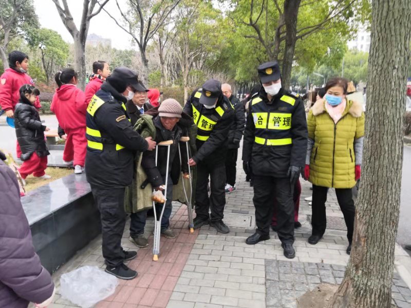 1月1日,宗保公司駐周浦市容隊員熊華幫助男子回家。