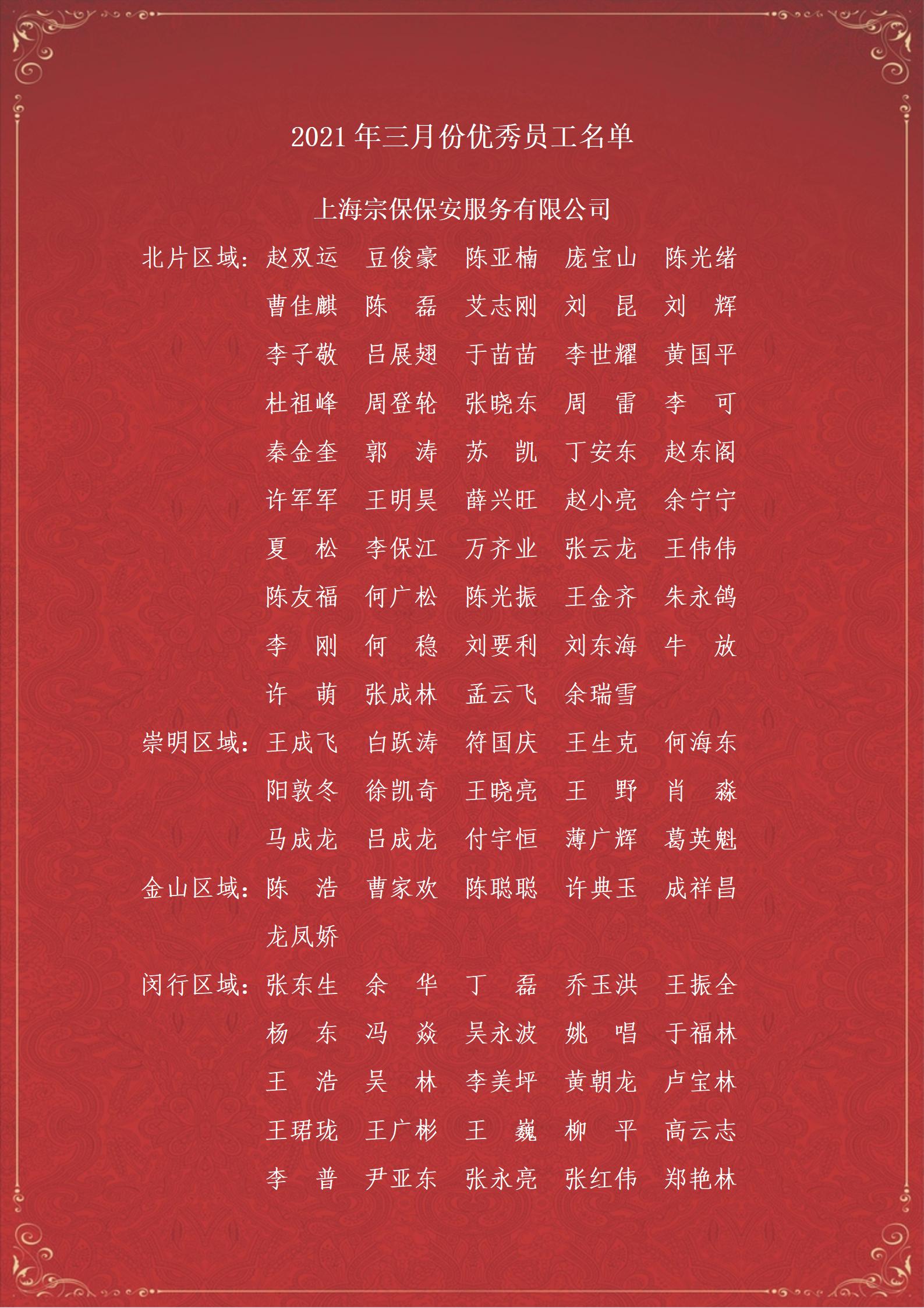 附:3月份優(yōu)秀員工名單