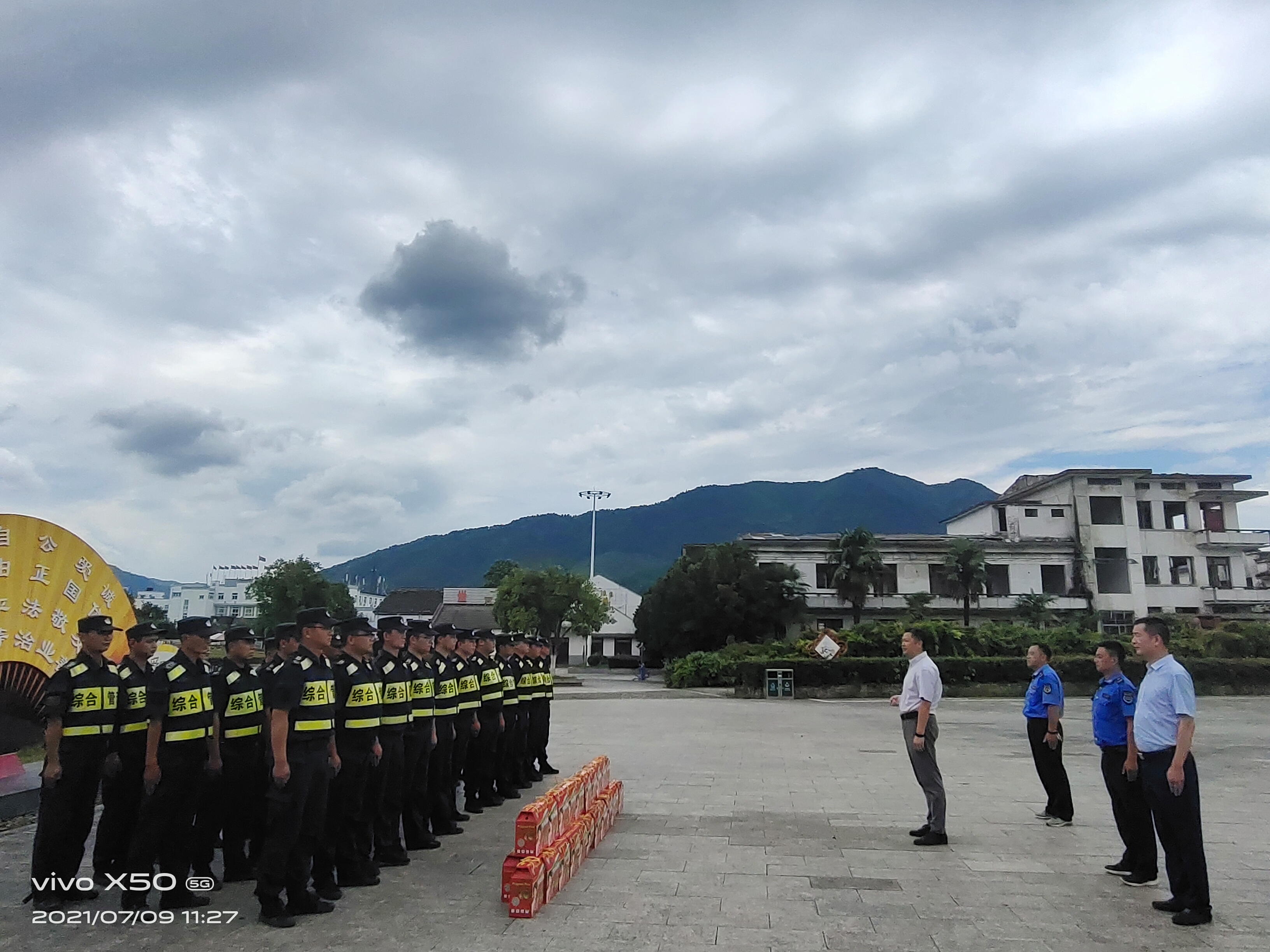 7月9日上午,黃山區城市管理行政執法局局長(cháng)汪雷春、執法大隊教導員黃亮、中隊長(cháng)曹太平等一行,冒著(zhù)炎炎烈日,慰問(wèn)奮戰在一線(xiàn)的宗保公司隊員。