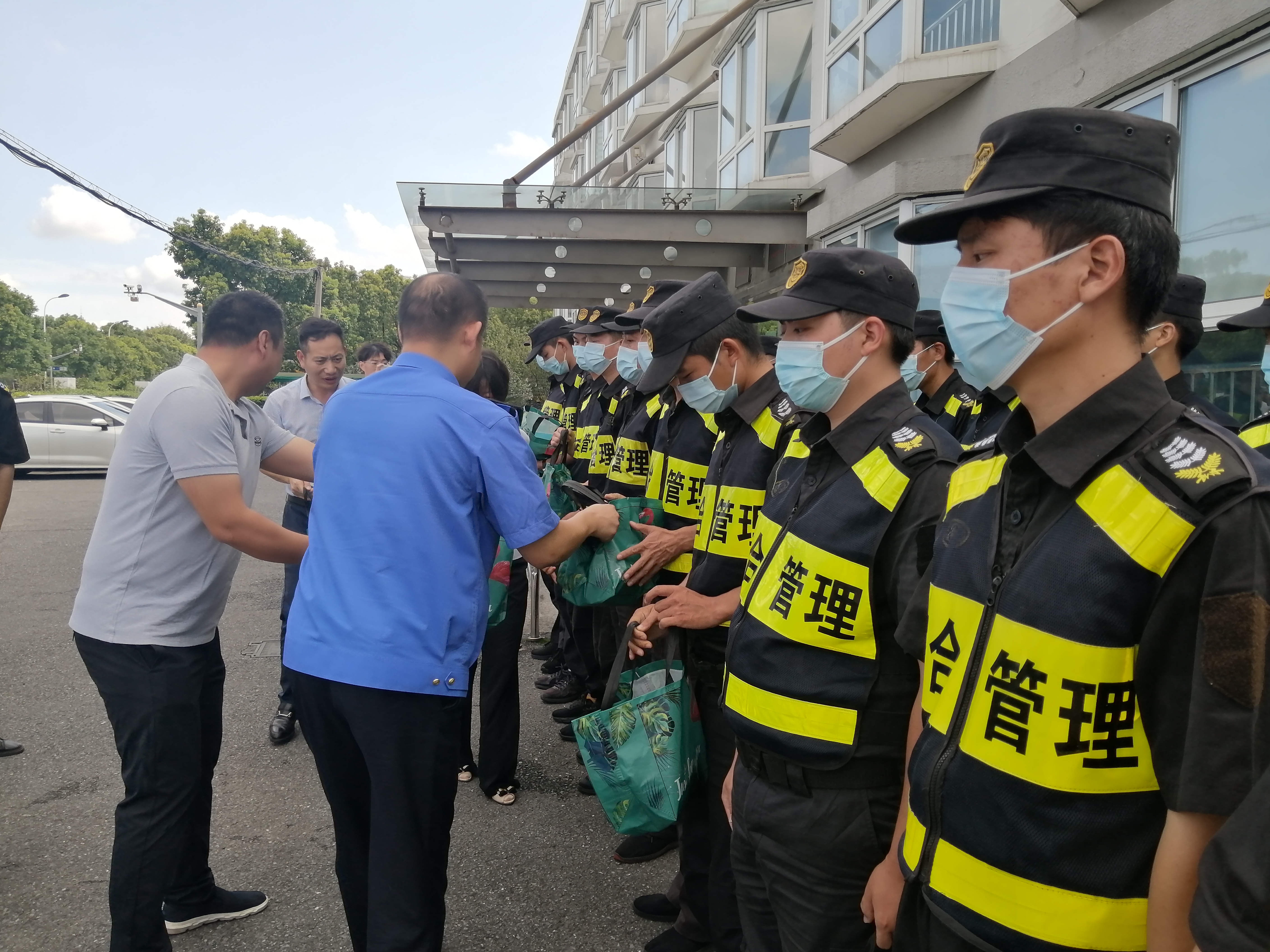 王哲副隊長(cháng)給隊員們送上了飲料等防暑降溫用品,感謝大家為輔助城市管理和維護城區秩序所作的貢獻,叮囑隊員們要落實(shí)好疫情防控措施,確保防護安全。同時(shí),提醒大家高溫天氣下,一定要做好防暑降溫工作,注意勞逸結合,確保身體健康。