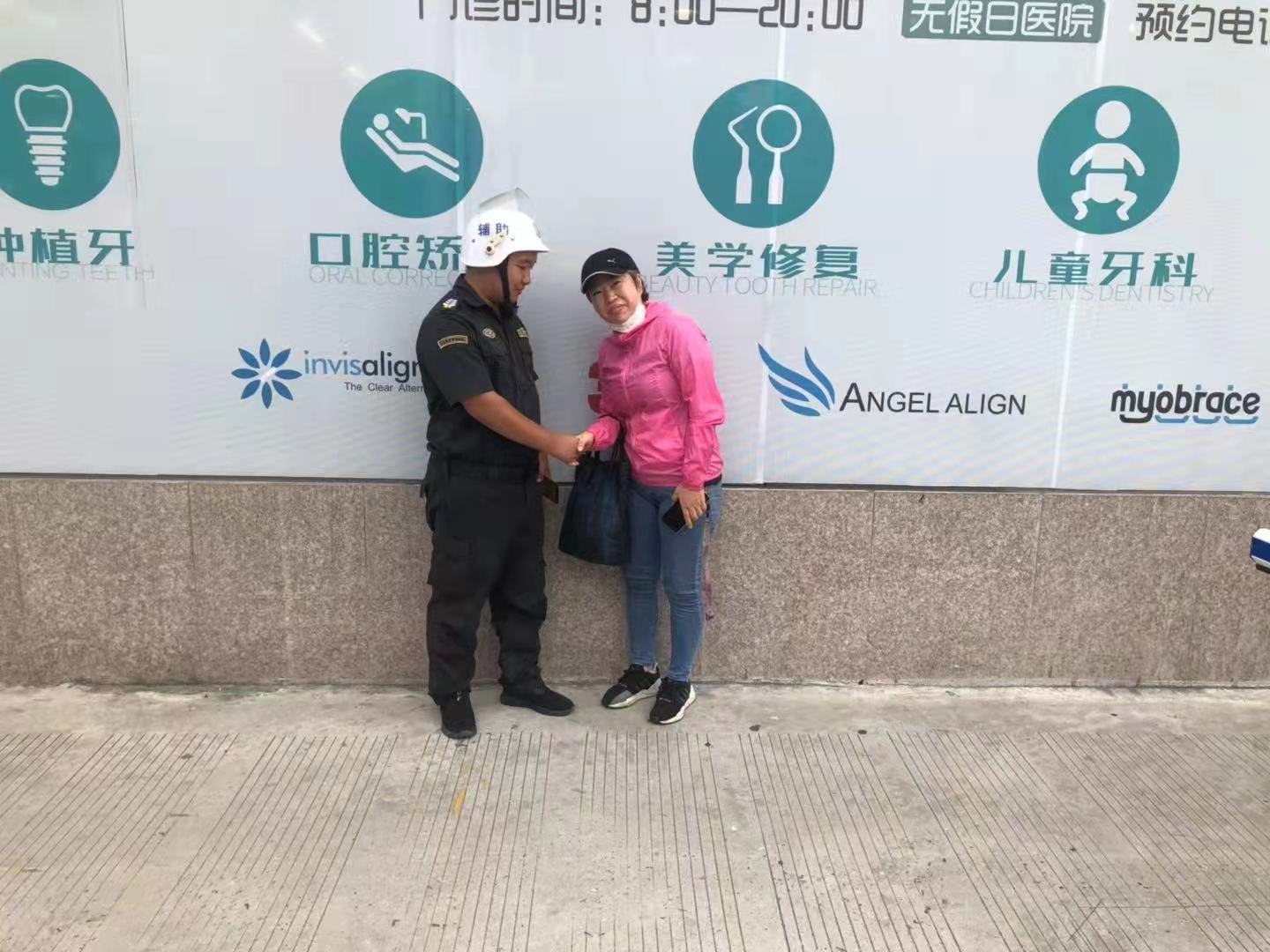 9月18日,宗保公司駐周浦市容項目隊員張陽(yáng)撿到新衣服歸還失主,受到好評。