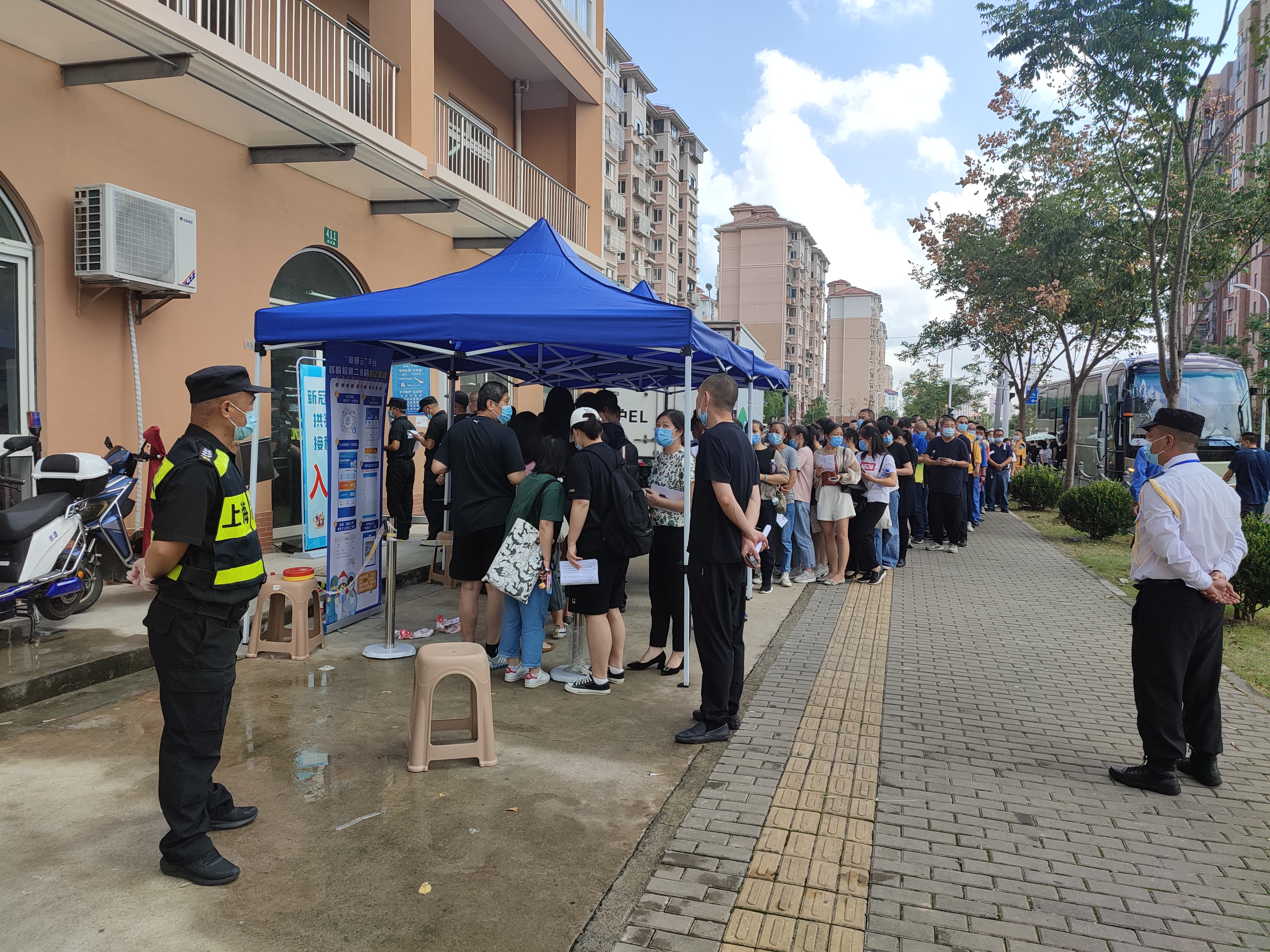 近期,惠南區域開(kāi)展第三針新冠疫苗接種工作,宗保公司承接拱亮路疫苗接種點(diǎn)安保秩序維護工作任務(wù)。