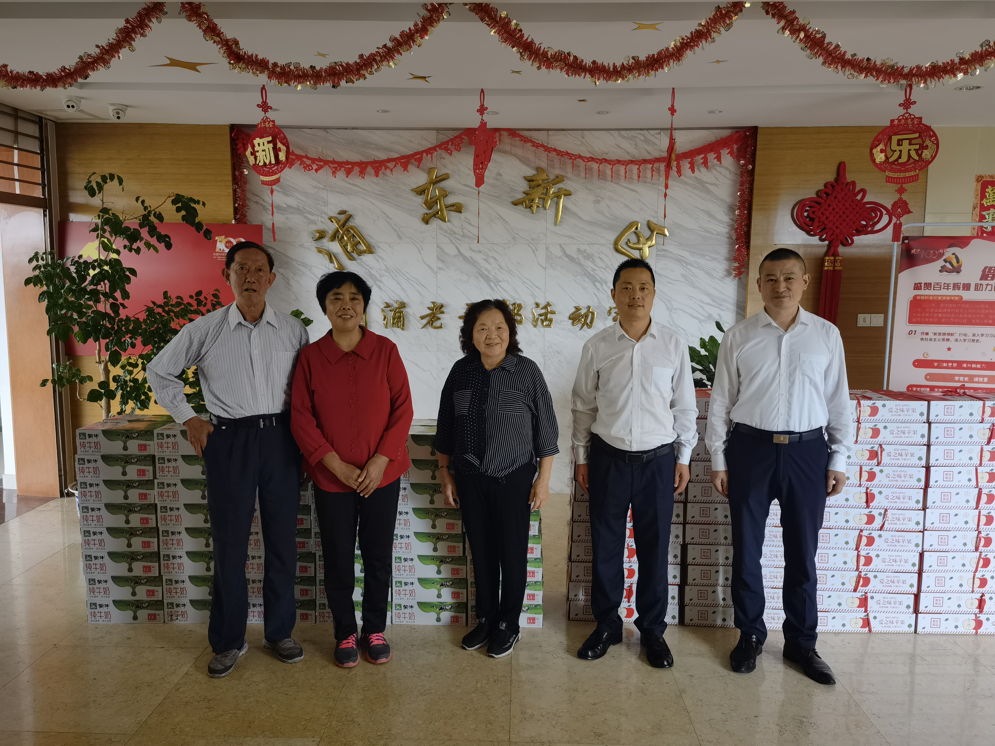 兩位經(jīng)理與老干部們拉家常、話(huà)變化、談感受,了解他們的身體情況,介紹公司的業(yè)務(wù)發(fā)展,為離退休老干部送上100箱牛奶、100箱蘋(píng)果,并代表公司創(chuàng )始人馮中保祝老干部們健康長(cháng)壽、生活幸福。