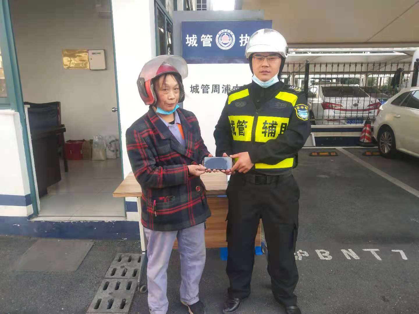 巡邏途中撿手機 歸還失主獲點(diǎn)贊—周浦市容項目隊員撿到手機