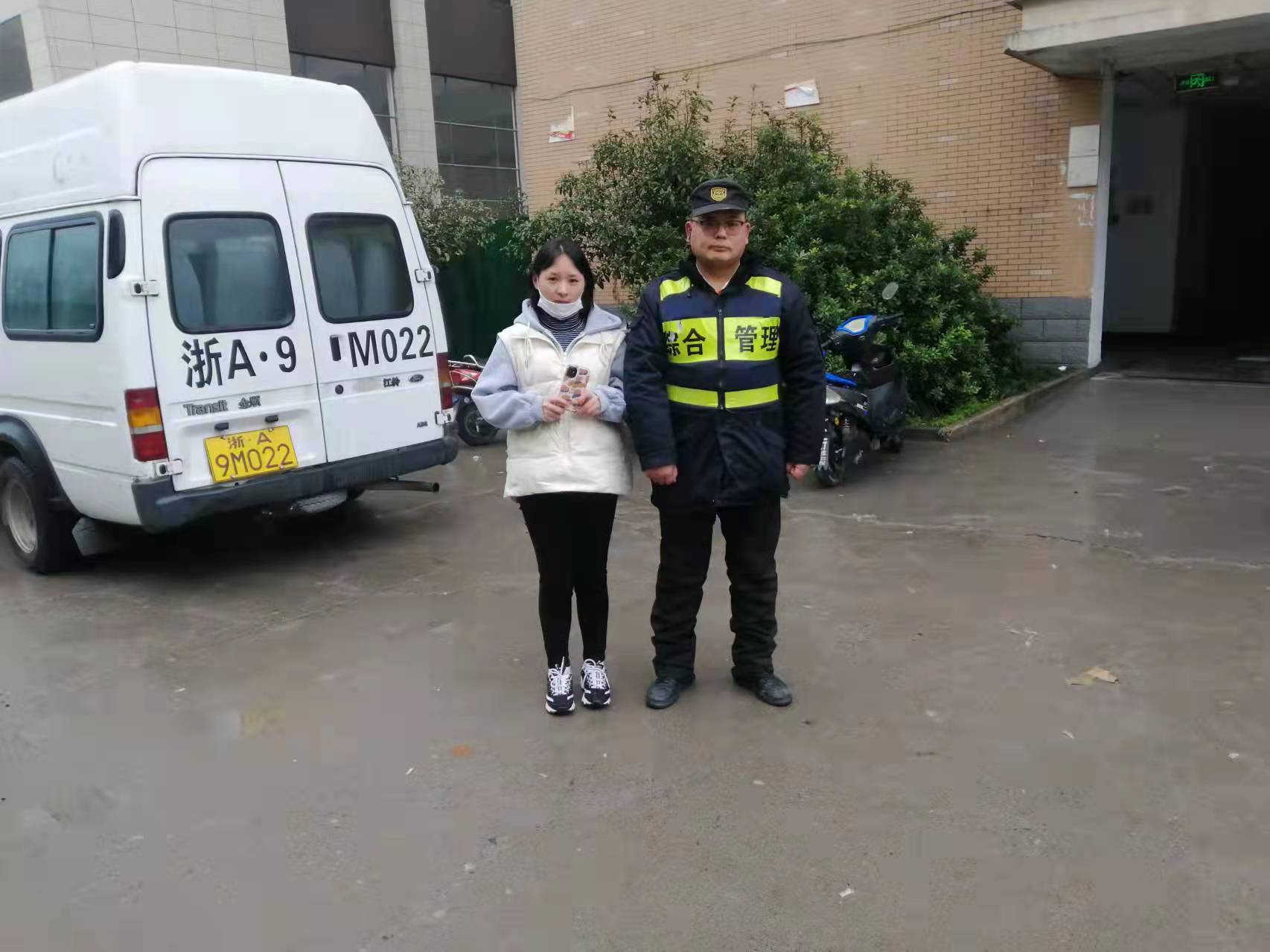 1月27日,浙江民泰駐良渚地鐵菜場(chǎng)項目隊員余天照撿到手機歸還失主,受到稱(chēng)贊。