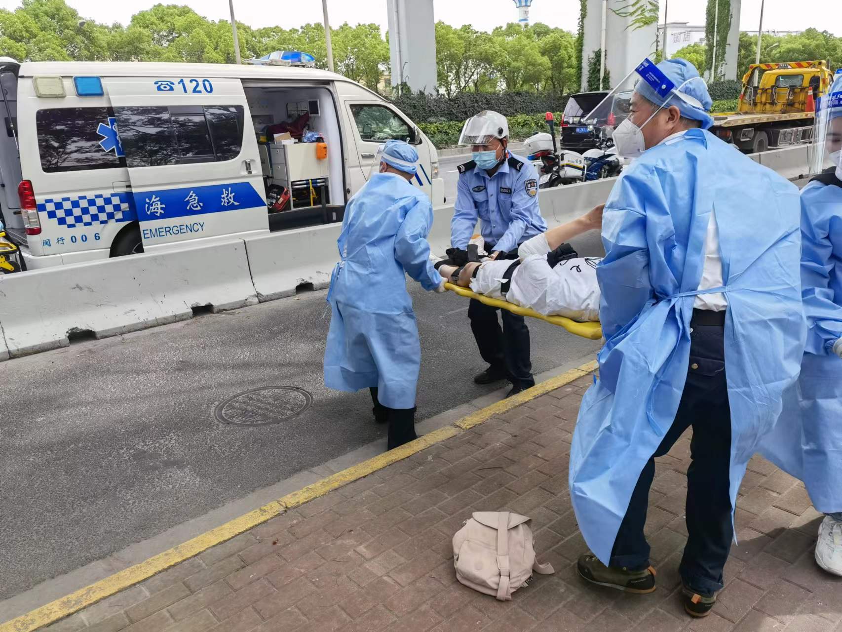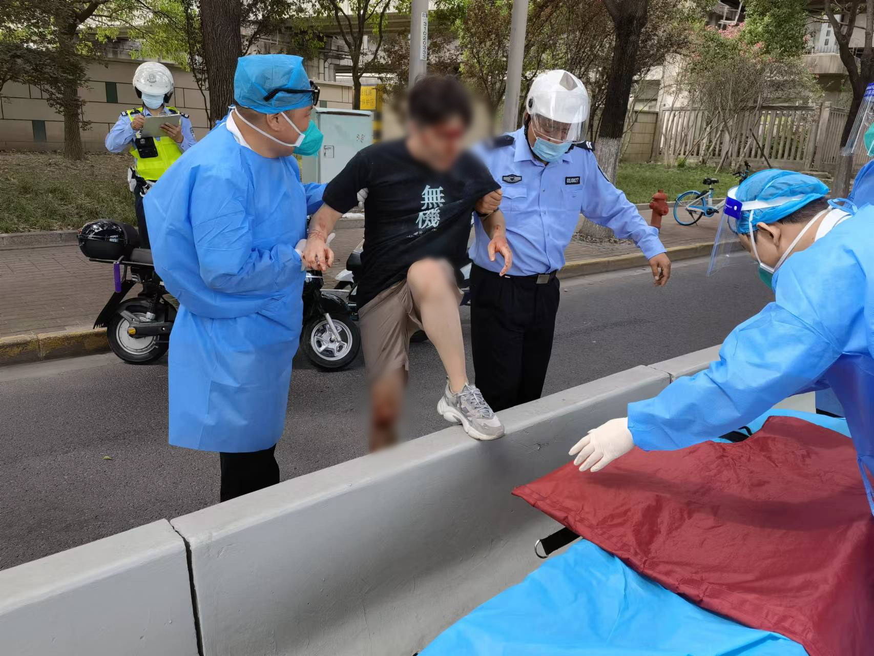 很快,警察和120救護車(chē)趕到了現場(chǎng)。警察詢(xún)問(wèn)情況后,王團結和吳雷協(xié)助醫務(wù)人員將兩名傷者抬上救護車(chē),送往醫院治療。