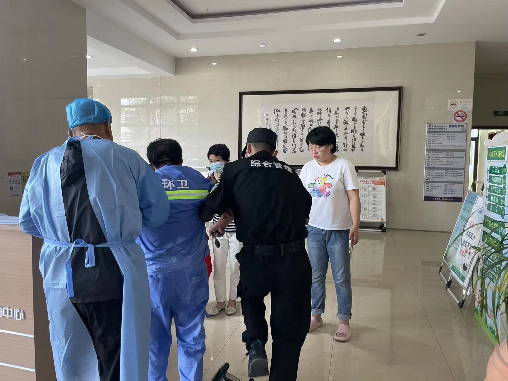 7月12日8:30,公司駐崇明區建設鎮項目員工韓永坤在建設鎮文化活動(dòng)中心核酸采樣點(diǎn)保障時(shí),發(fā)現一位身穿藍色環(huán)衛衣的老人癱坐在地,臉色蒼白,衣服濕透,疑似中暑。韓永坤攙扶老人,遞服仁丹和礦泉水,并聯(lián)系其家人送往醫院治療。