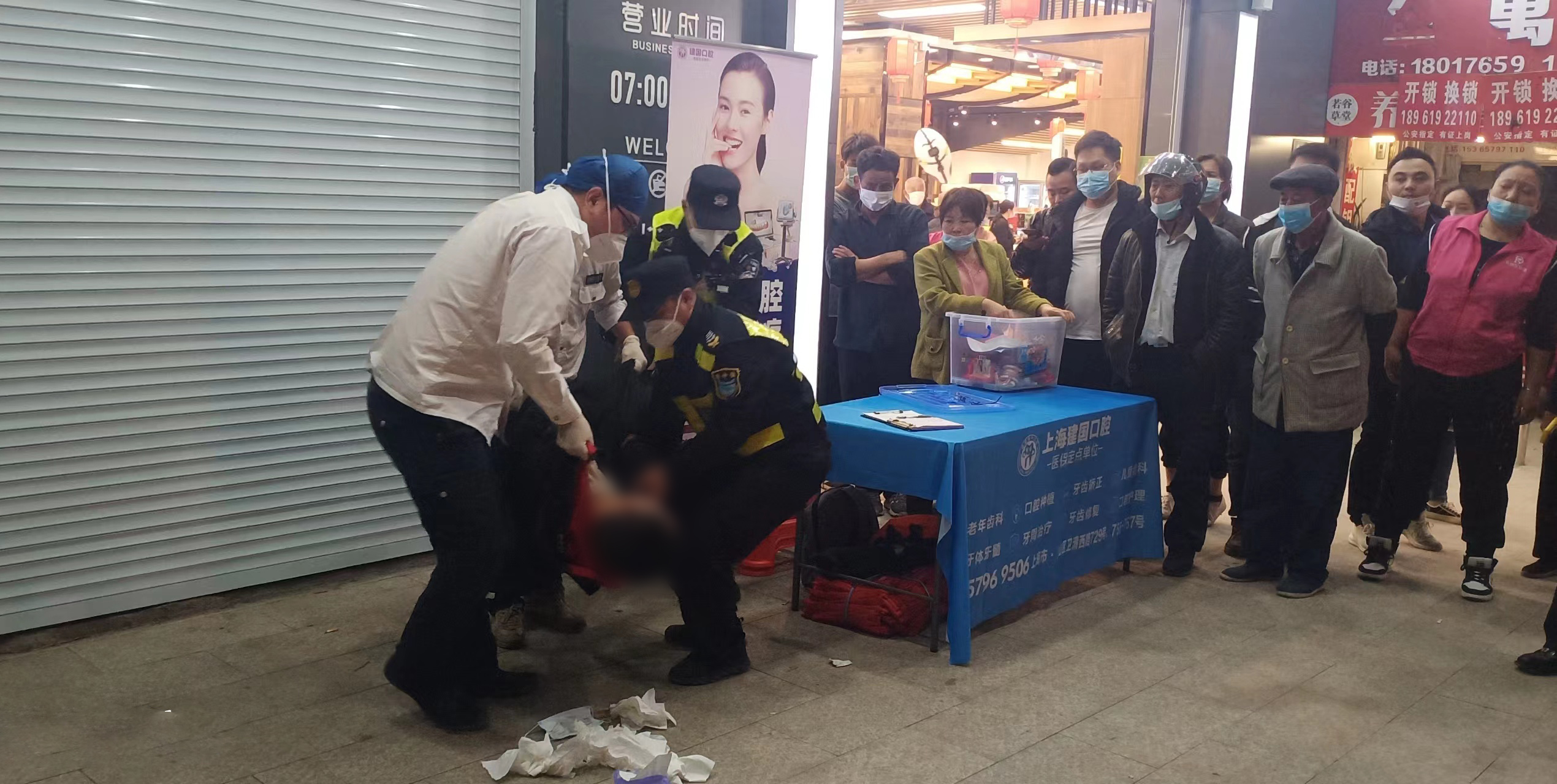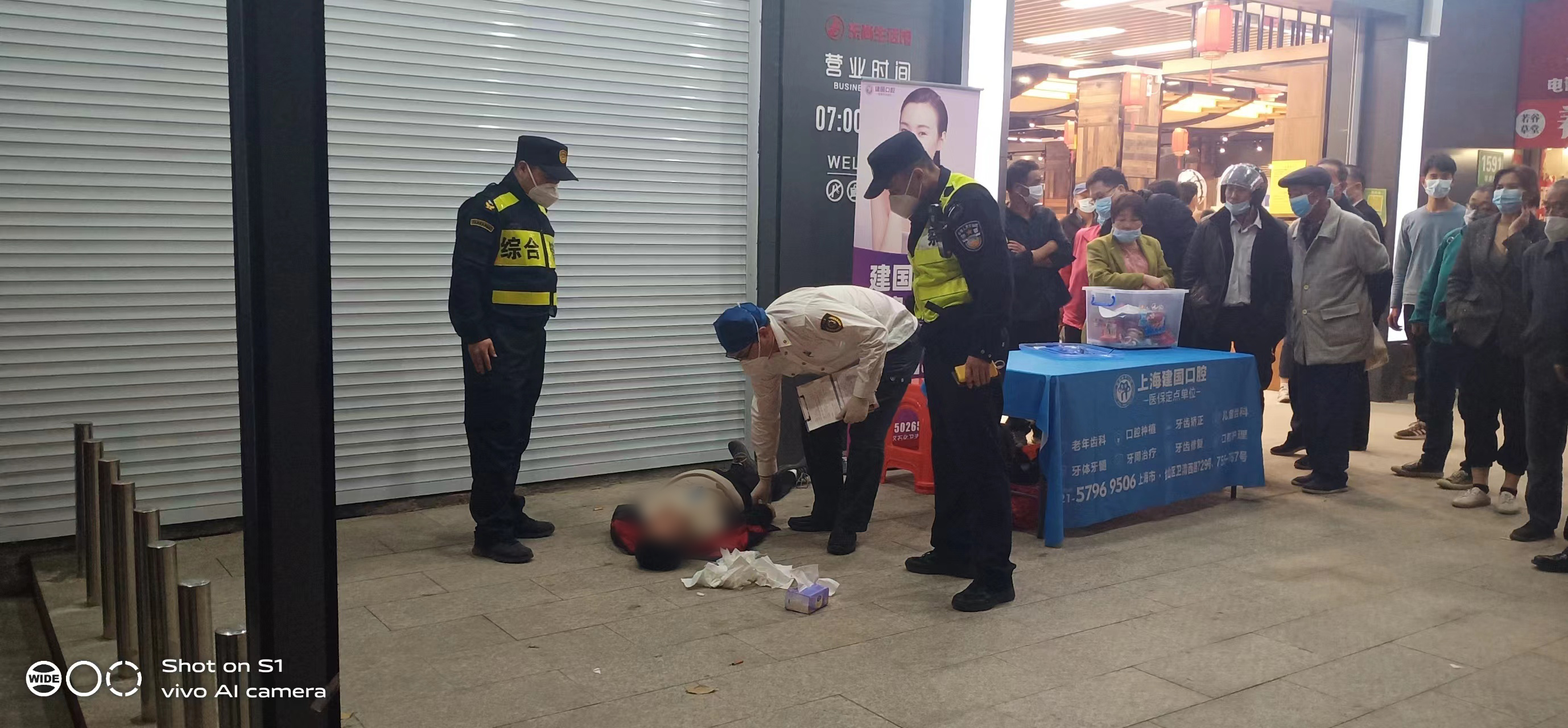 當日17:00,宗保員工王剛和劉躍春巡查至金山區龍皓路綠地東尚超市門(mén)口時(shí),看到一個(gè)男子躺在地上,便趕緊上前察看。