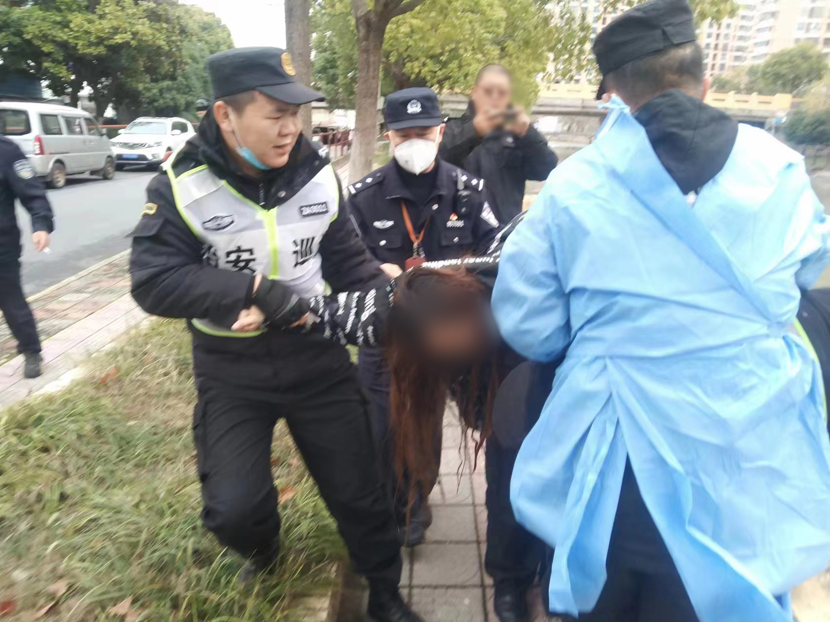 冬日的河水冰冷襲人,剛從河里爬上來(lái)的朱路路,渾身濕透凍得瑟瑟發(fā)抖,已經(jīng)累得精疲力盡。幾名員工向趕到現場(chǎng)的民警說(shuō)明情況后,隨即裹帶著(zhù)朱路路離開(kāi),該女子則由民警進(jìn)行后續處理。