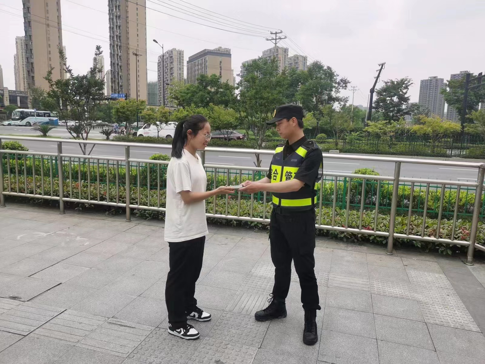 很快,一位身穿白色T恤的女子急匆匆地趕到約定地點(diǎn)。在核實(shí)證明手機是該女子所丟失后,彭帥超將手機交還給了她。該女子對民泰公司員工彭帥超拾金不為的行為連連感謝贊揚。