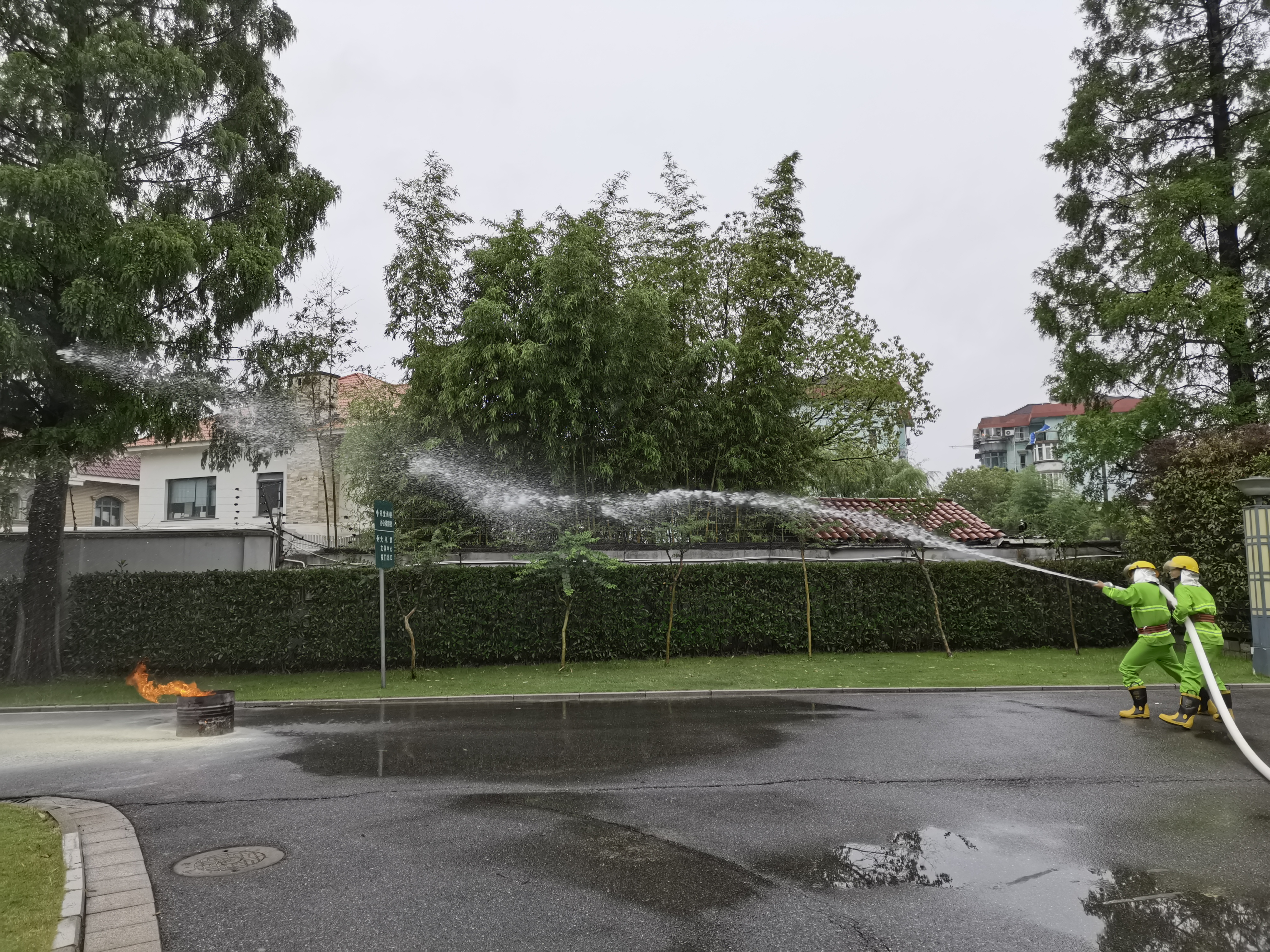 演練中,負責人結合近年來(lái)典型的火災案例,分析了發(fā)生火災的原因,強調了發(fā)生火災應注意的事項,并就火災報警、撲救、逃生、疏散等消防知識進(jìn)行了詳細講解。隨后,開(kāi)展火災情景模擬演練,按照“一提、二搖、三拔、四瞄、五壓噴”的流程,演示了消防器材的使用方法、消防水帶如何使用以及如何進(jìn)行初期火災撲救。