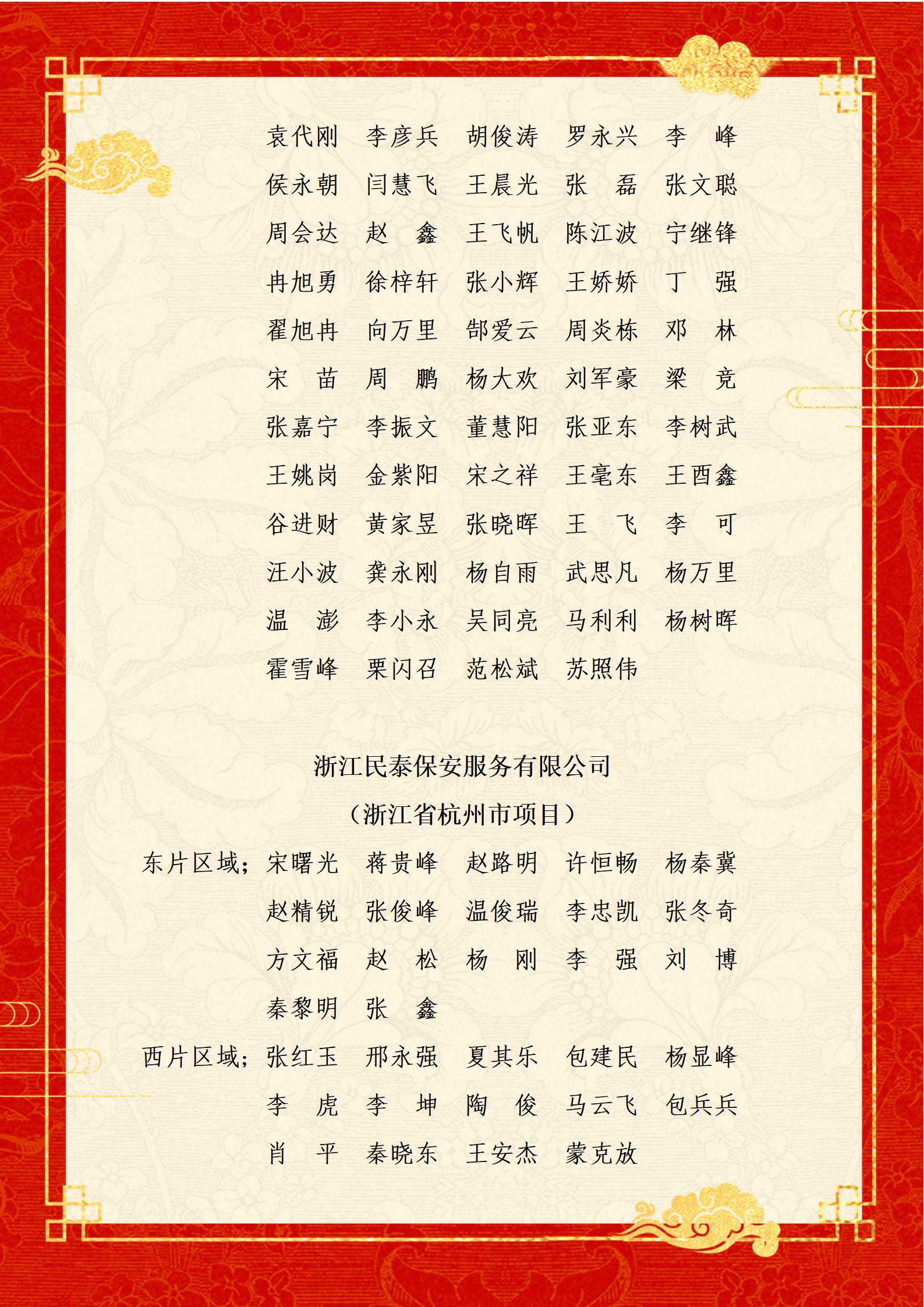 11月份,公司廣大員工根據甲方的任務(wù)要求,按照公司的部署安排,積極踐行公司“誠信為本 服務(wù)至上”的經(jīng)營(yíng)理念,持續發(fā)揚勇于擔當、善作善為的工作作風(fēng),助力完成了第六屆中國國際進(jìn)口博覽會(huì )、2023斯巴達勇士賽杭州站等大型活動(dòng)安保任務(wù),全力配合甲方做好了城市管理輔助、治安巡邏聯(lián)防、物業(yè)服務(wù)保障、生態(tài)環(huán)境保護、高鐵線(xiàn)路巡防等工作。期間,涌現出了一批盡心履責、崗位建功、拾金不昧、熱心助人的優(yōu)秀員工和先進(jìn)典型。