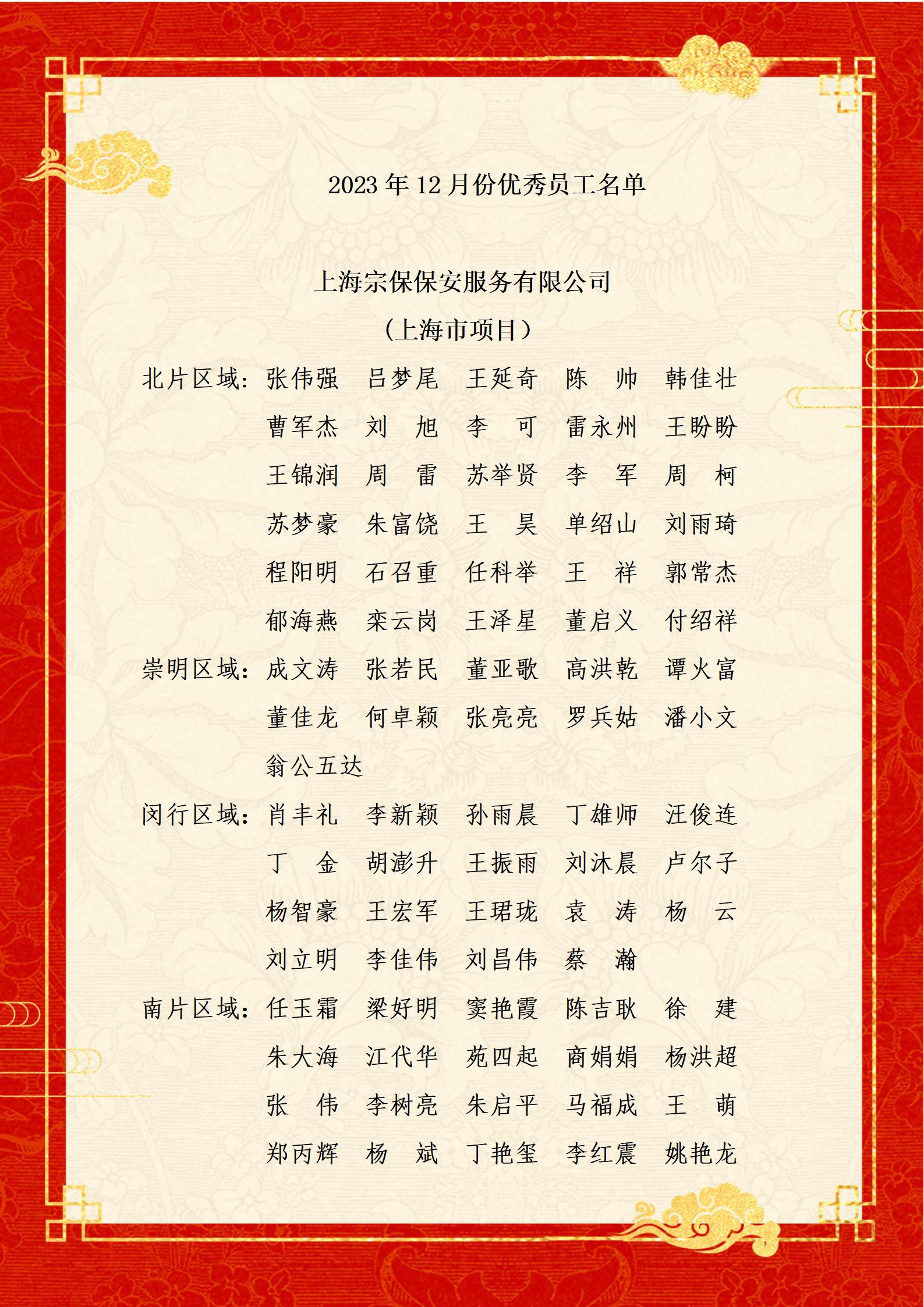 宗保公司關(guān)于表彰獎勵2023年12月份優(yōu)秀員工的通報