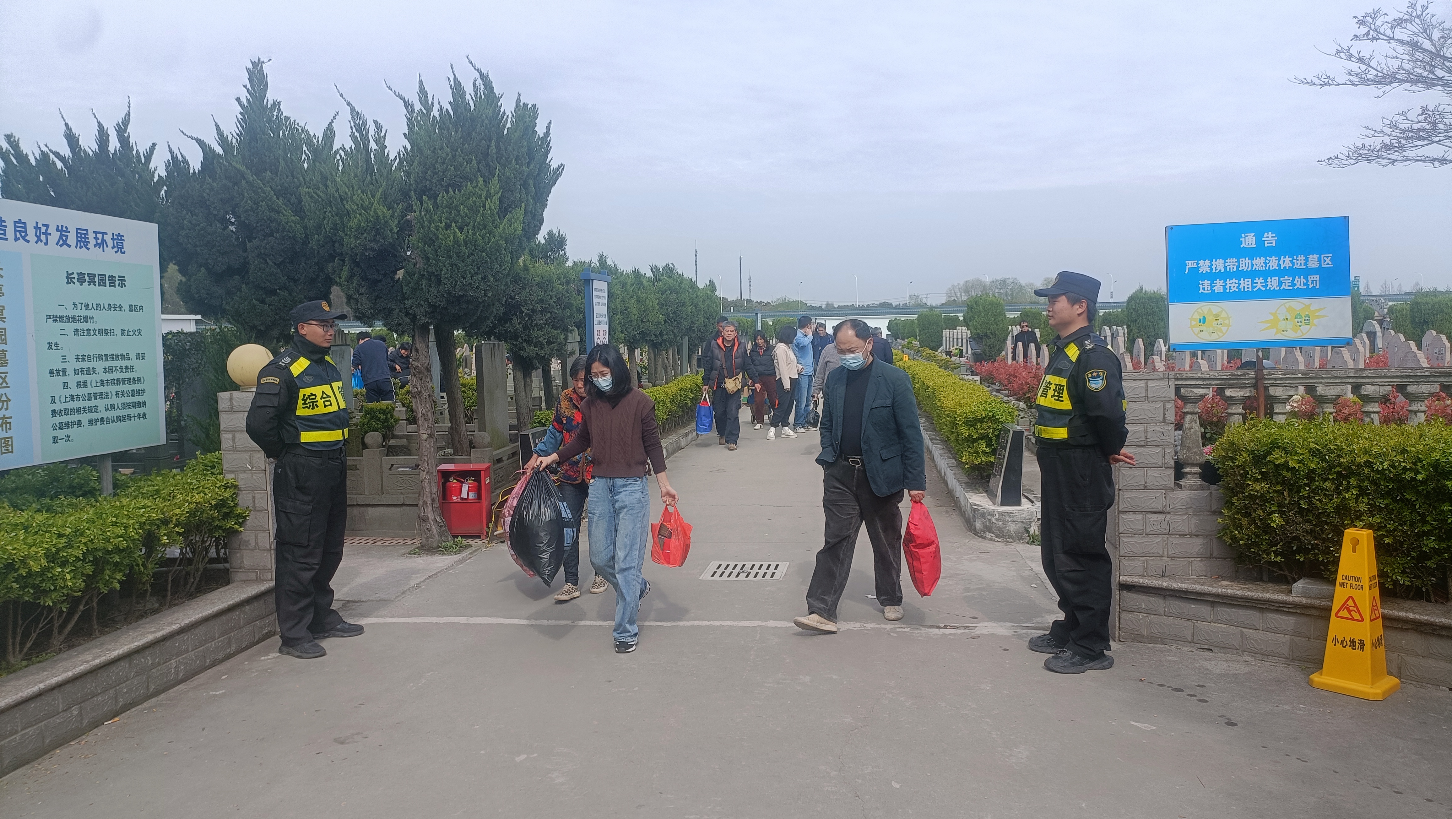 為切實(shí)做好清明祭掃安全保障,公司抽調精干員工,按照公墓陵園管理方的要求,采取在公墓陵園主要出入口定崗值勤與墓區重點(diǎn)區域不間斷巡查相結合的方式,維持公墓陵園祭掃秩序。