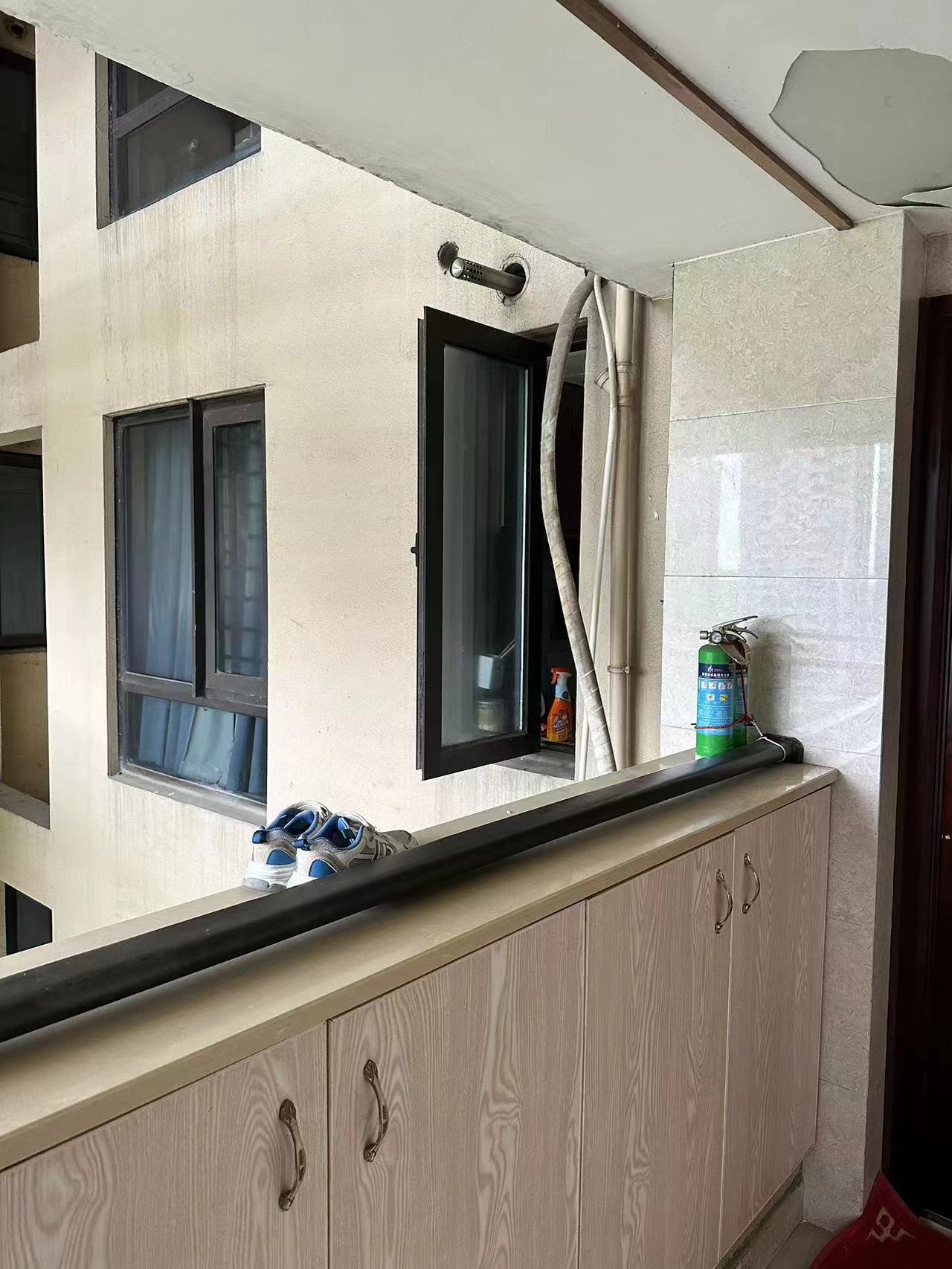 時(shí)間就是生命。公司員工凌邵凱觀(guān)察后決定從側面的窗戶(hù)爬進(jìn)廚房。他來(lái)不及做任何安全防護措施,面對12層樓的高度,不懼危險踩著(zhù)室外的空調外機,跨過(guò)1米多的懸空距離,爬上廚房窗臺進(jìn)到了屋內。