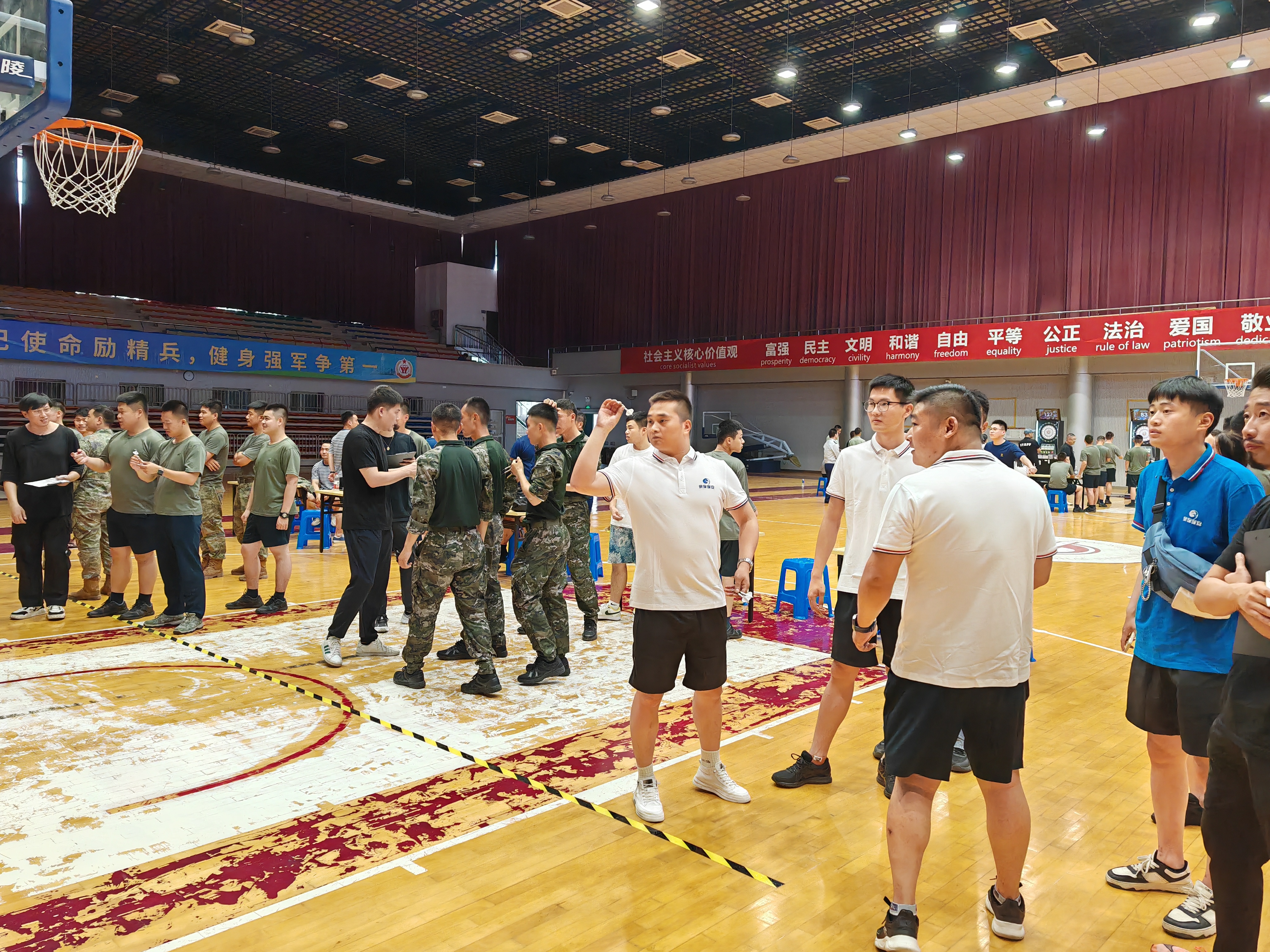 本次大賽設有籃球、負重跑、摜牌(摜蛋)、羽毛球、乒乓球、軍體拳、軟式飛鏢、舞龍舞獅、光電射擊、拔河等10個(gè)單項體育賽事。公司接到競賽邀請后,高度重視,認真做好賽前準備,依據競賽項目設置標準,并結合公司和員工個(gè)人實(shí)際,選拔出55名退役軍人員工代表公司參加比賽。