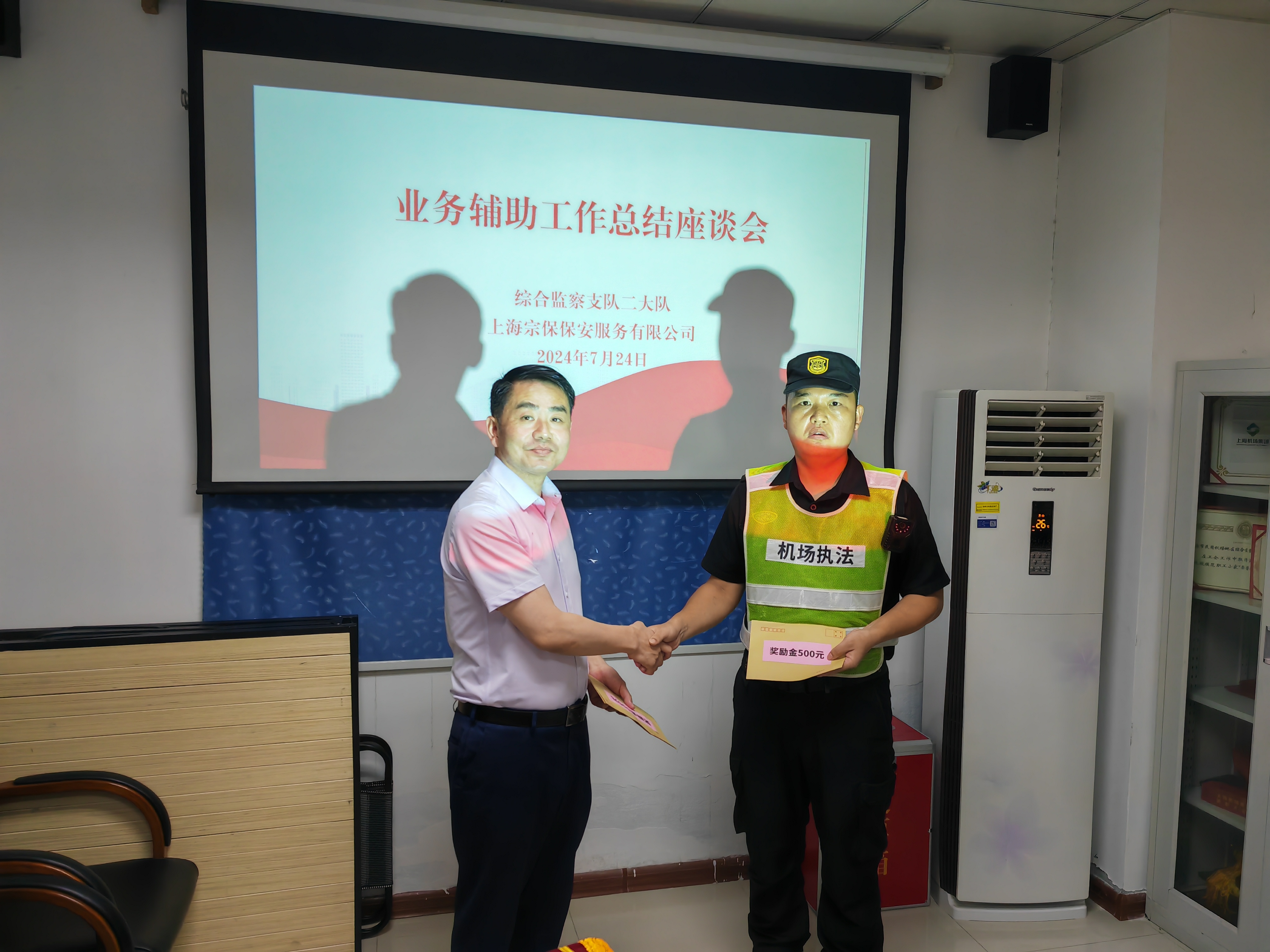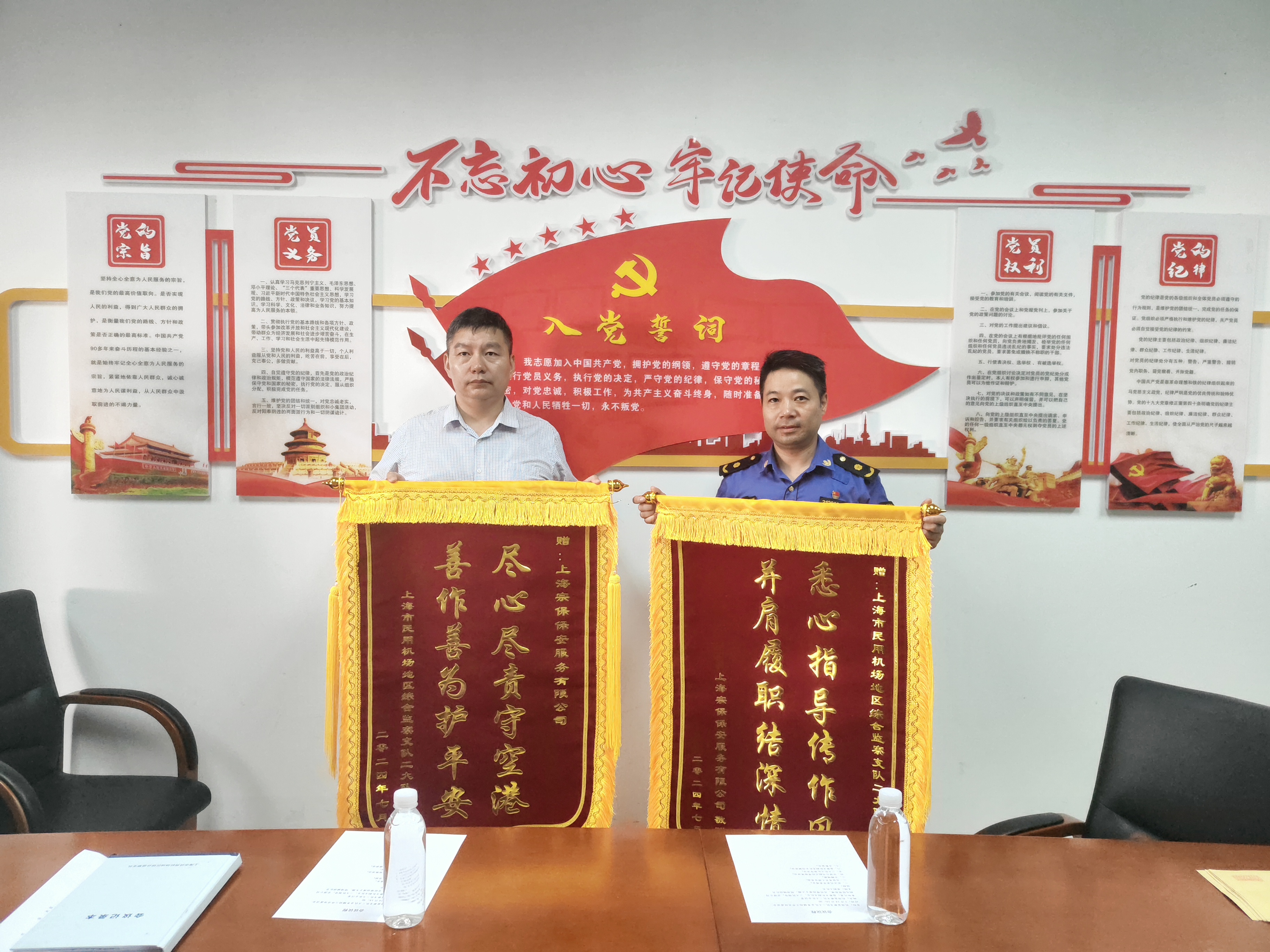 7月24日,宗保公司駐上海市民用機場(chǎng)地區綜合監察支隊二大隊項目收到甲方贈送的繡有“盡心盡責守空港 善作善為護平安”的錦旗,感謝公司為助力維護浦東機場(chǎng)航站樓治安環(huán)境作出的積極貢獻。