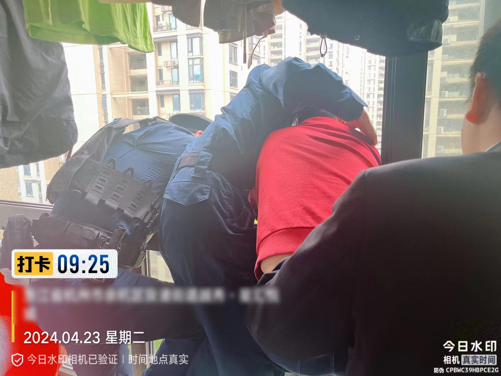 4月23日9時(shí)許,杭州市余杭區良渚新城派出所接到群眾報警,稱(chēng)家住某小區12樓的一女子欲跳樓輕生。接警后,派出所立即指令正在附近執勤的派出所勤務(wù)隊員李梟琦和民泰公司員工凌邵凱前往現場(chǎng)處置。