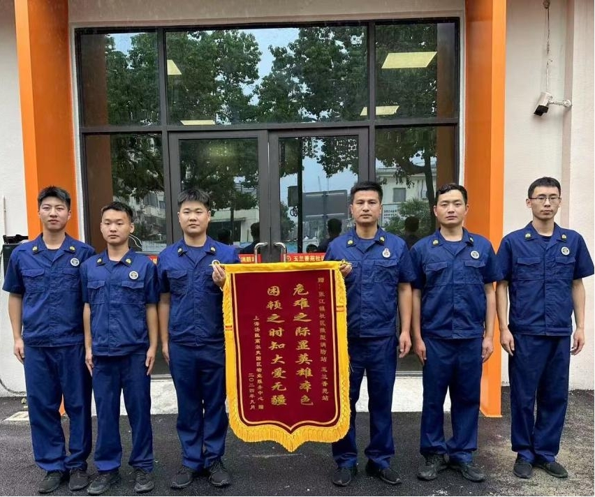 浦東新區惠南鎮黃路微站獲贈繡有“危難之時(shí)顯身手 人民消防為人民”的錦旗