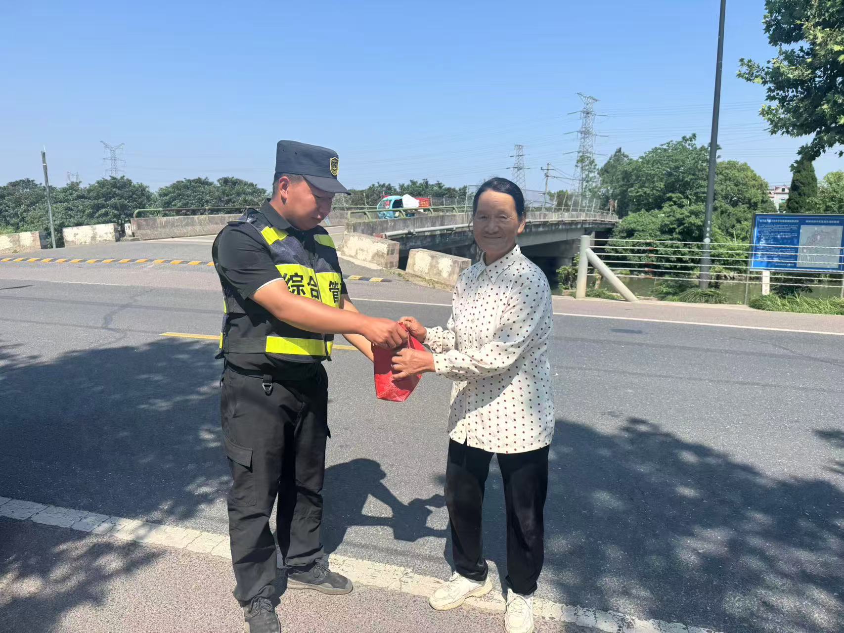 5月29日8:10,浙江民泰公司駐杭州市臨平區東湖市容項目員工羅海銘在超山龍超路西園碼頭執勤時(shí),撿到一個(gè)紅色手提袋,內有若干現金和一部手機。羅海銘報告班組長(cháng)后,便在原地邊執勤邊等待失主。