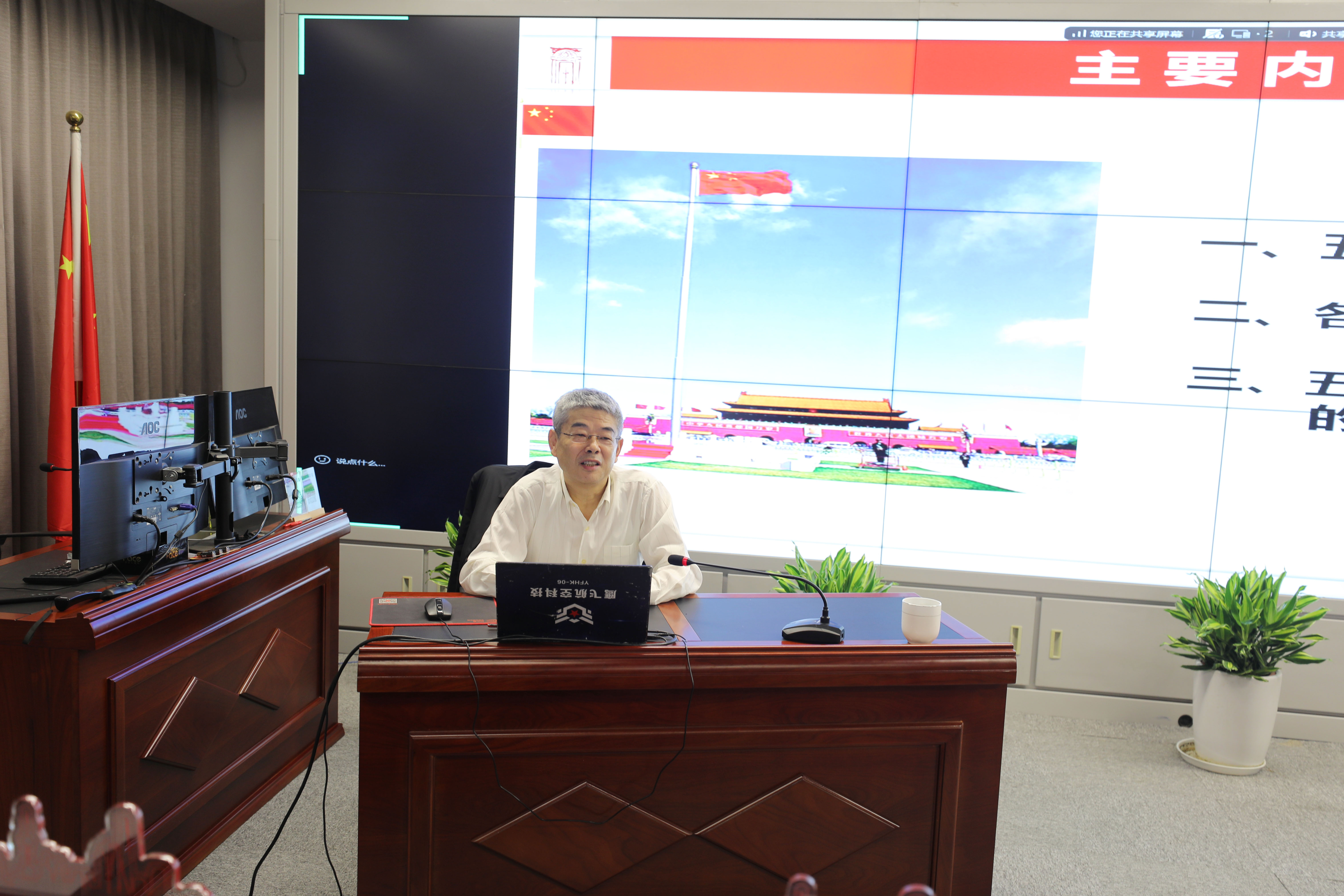 授課中,曾副主任以“五星紅旗的誕生”為主線(xiàn),深情講述了國旗從三千多份設計稿中歷經(jīng)層層遴選、精雕細琢而最終誕生的不凡歷程。結合珍貴的歷史影像,他進(jìn)一步闡述了黨旗、軍旗和國徽背后的設計故事與象征意義,帶領(lǐng)大家重溫了那段波瀾壯闊的紅色歲月,深刻感悟了旗幟所承載的精神偉力。