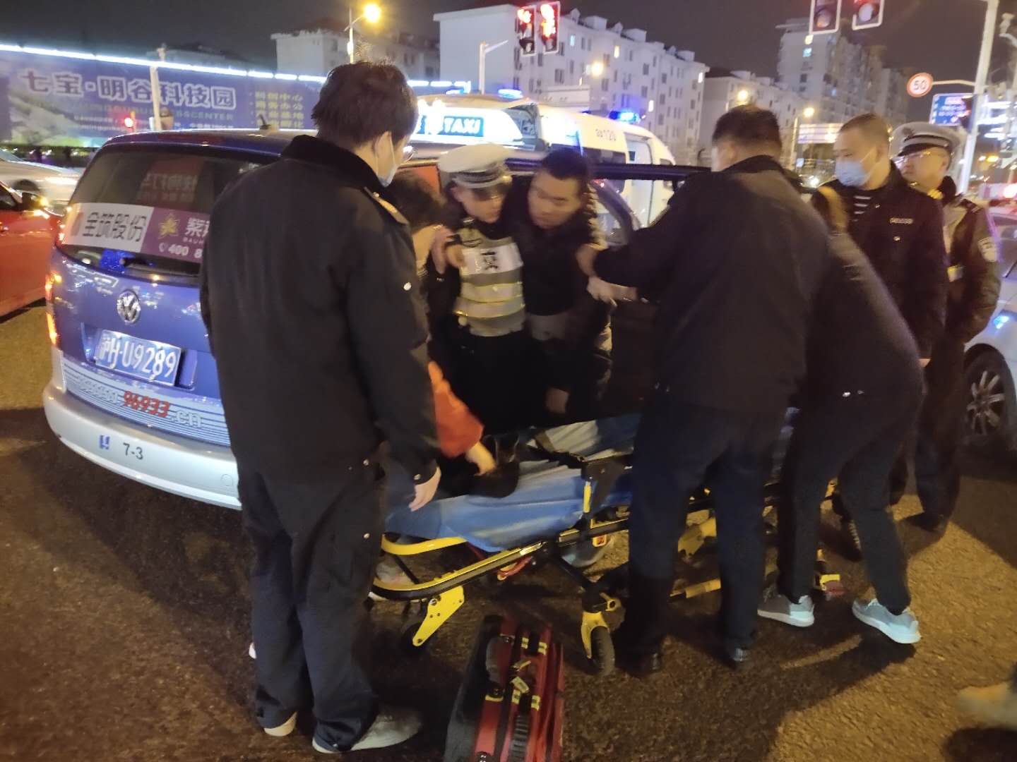 當日20:00左右,當宗保隊員馮焱和但漢峰巡邏至七莘路漕寶路路口時(shí),發(fā)現有一位路人躺在路邊,渾身抽搐,疑似癲癇,該病人家屬站在旁邊,束手無(wú)策。小馮和小但立即上前幫忙。但漢峰略懂癲癇癥急救常識,先將病人側身,解開(kāi)病人上衣扣子,撬開(kāi)嘴巴,防止咬到舌頭。馮焱立即通知120,并報警。民警和120先后到達現場(chǎng),小馮和小但將病人抬上救護車(chē),送往醫院救治。