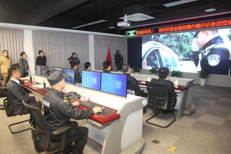 隨后,許航宇副主任一行觀(guān)看了公司的宣傳片,對公司的管理理念、業(yè)務(wù)運行模式和遠景發(fā)展規劃有了一個(gè)更加詳細直觀(guān)的認識。對宗保公司關(guān)心培養退役軍人的暖心舉措,致力于參與輔助城市精細化管理所做的努力,有了更全面深化的了解。接著(zhù)利用視頻信息系統,視頻連線(xiàn)分布在浙江、安徽、江蘇、上?!叭∫皇小钡囊痪€(xiàn)隊員,演示了對隊員執行任務(wù)抽查督導情況。公司運用現代科技手段,實(shí)現人防與技防相結合;執勤中隊員們令行禁止的工作作風(fēng)、熱情細致的服務(wù)態(tài)度、 整齊飽滿(mǎn)的精神狀態(tài)、專(zhuān)業(yè)扎實(shí)的基本功以及公司機動(dòng)隊現場(chǎng)進(jìn)行的擒拿格斗演練,給記者團一行留下了深刻印象,展現了宗保人良好的精神風(fēng)貌。