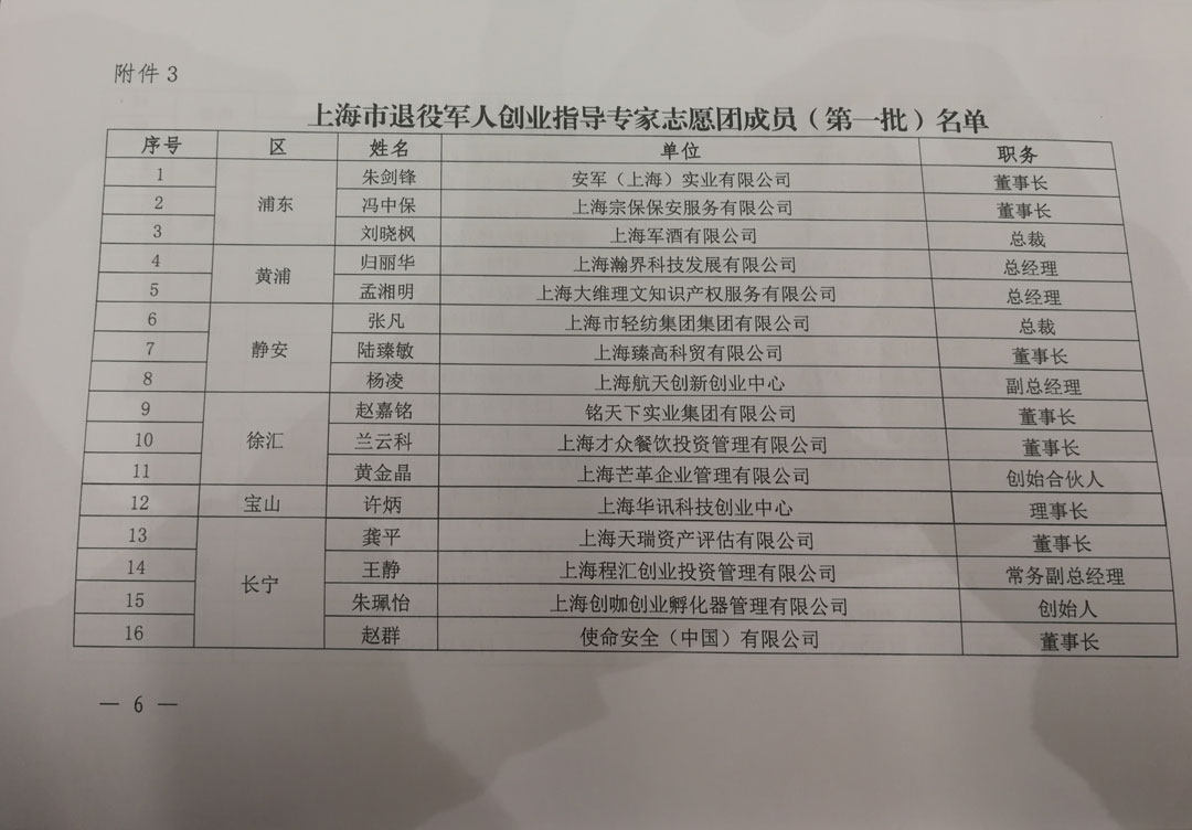 董事長(cháng)馮中保被認定為 上海市退役軍人創(chuàng )業(yè)指導專(zhuān)家