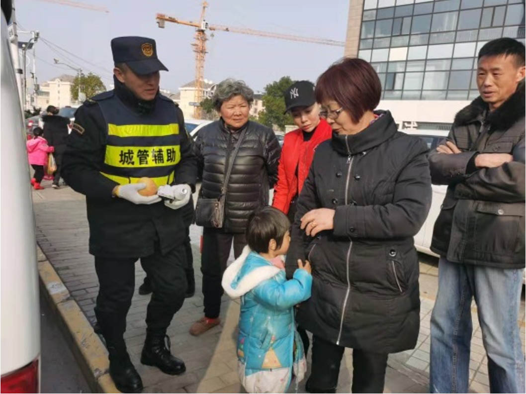 此時(shí),宗保公司駐周浦城管項目輔助人員王安斌在周市路關(guān)岳路的鎮黨建中心門(mén)口見(jiàn)到了這個(gè)驚慌失措的小姑娘。據王安斌回憶說(shuō),當時(shí)正好是下午三時(shí)左右,黨建中心門(mén)口有一名四歲左右的女童獨自在馬路邊哭泣。王安斌見(jiàn)狀立即停止巡查,上前詢(xún)問(wèn)情況。原來(lái),這個(gè)小姑娘和家里人走失了,說(shuō)不清楚家庭地址和家人電話(huà)。王安斌立即將此情況上報,并告知附近2公里的隊員注意街面巡查時(shí)有無(wú)尋找孩子的人員。半個(gè)小時(shí)后消息傳來(lái),周市路中大街附近,有個(gè)女子神色慌張,不停地在打電話(huà)聯(lián)系。隊員立即通知王安斌帶孩子前來(lái)。終于,走失的孩子找到了外婆,大人孩子破涕為笑。老夫妻對王安斌急群眾所急的善舉不停地表示謝意,并要買(mǎi)來(lái)香煙作為感謝。王安斌婉言謝絕,用他的話(huà)說(shuō):我只是做了我應該做的,我雖然不是正式隊員,但我身上穿的衣服印有“城市管理”,我也有責任做好身邊的每一件事。