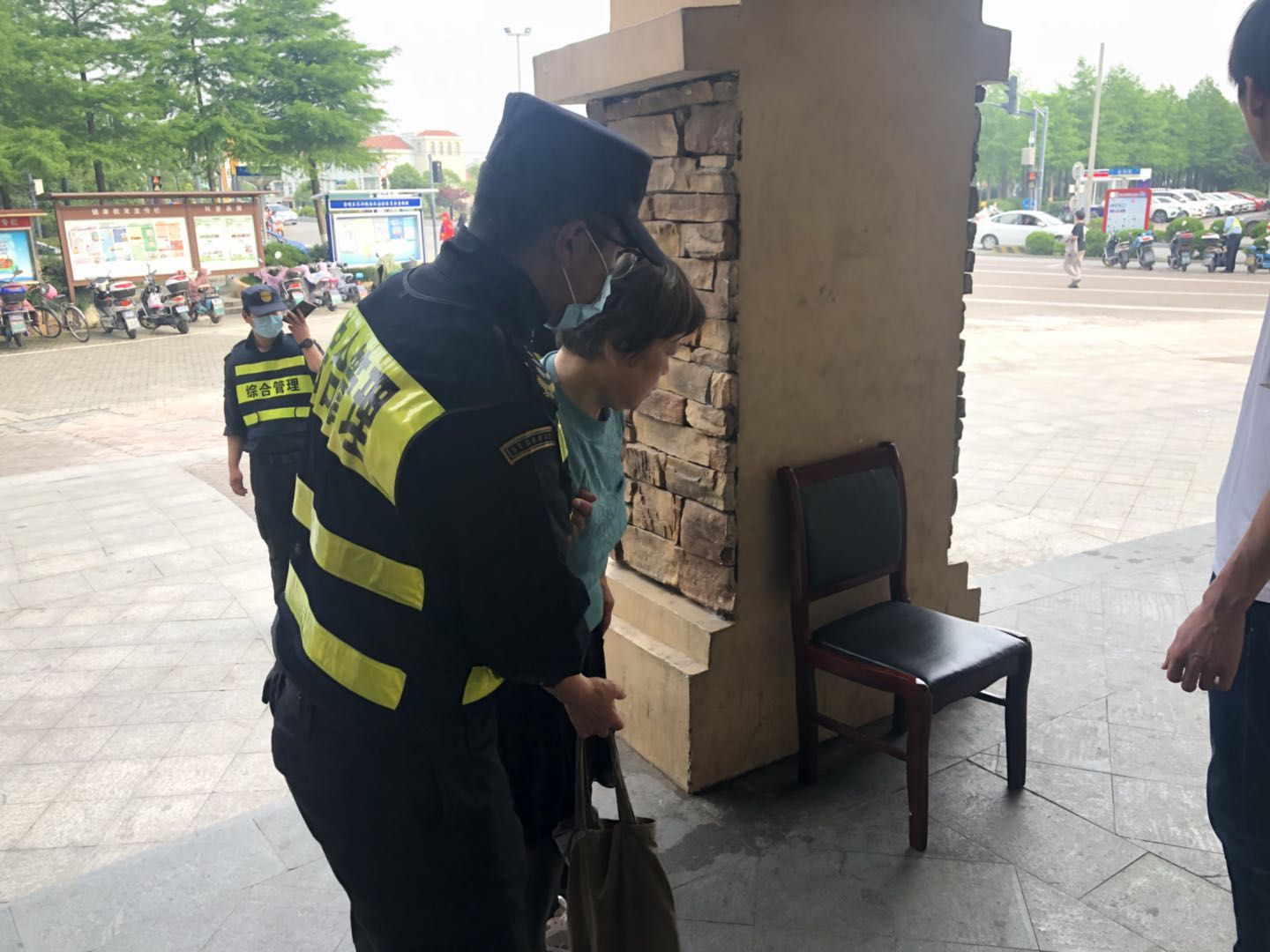 5月18號6:50,崇明長(cháng)興島項目隊員張耀華在一街區華聯(lián)超市進(jìn)行日常市容管理時(shí),突然聽(tīng)到一聲大喊,循聲過(guò)去看到一位老奶奶倒在地上。小張急忙趕過(guò)去,將躺在地上疼得發(fā)抖的老奶奶扶到椅子上休息,詳細詢(xún)問(wèn)了老奶奶發(fā)生的情況和親屬的聯(lián)系方式。原來(lái)老奶奶上樓梯時(shí)不小心一腳踩空,從樓梯上摔了下來(lái)。見(jiàn)老奶奶休息一會(huì )無(wú)大礙后,與同事一起把老奶奶送到家里。