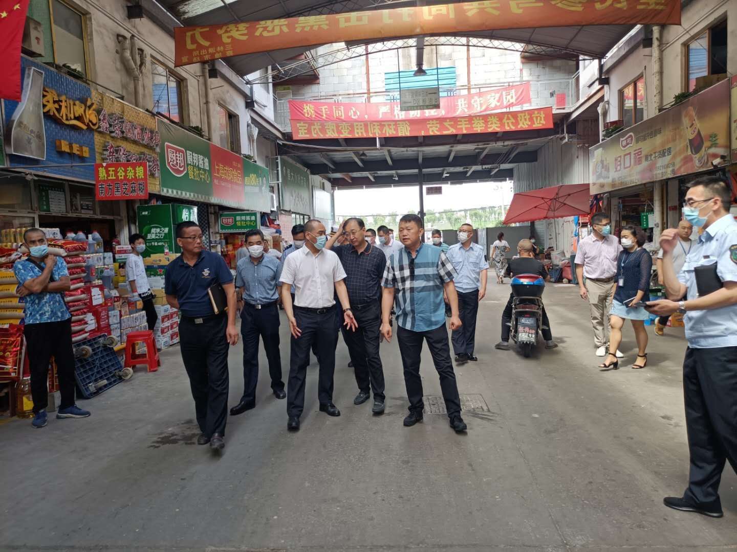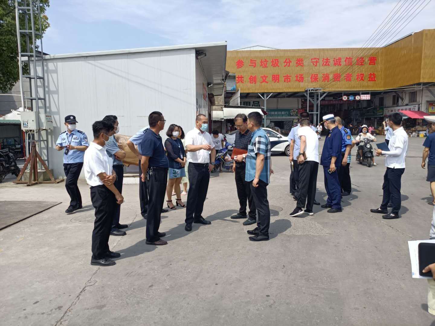 顧乃明副書(shū)記聽(tīng)取了農貿市場(chǎng)疫情防控工作情況匯報,肯定了農貿市場(chǎng)的工作。同時(shí),對宗保公司駐三林喜地農貿市場(chǎng)的隊員們表示慰問(wèn),對隊員們在炎炎的烈日下依然堅守工作崗位,履職盡責的敬業(yè)精神給予充分肯定和贊揚。