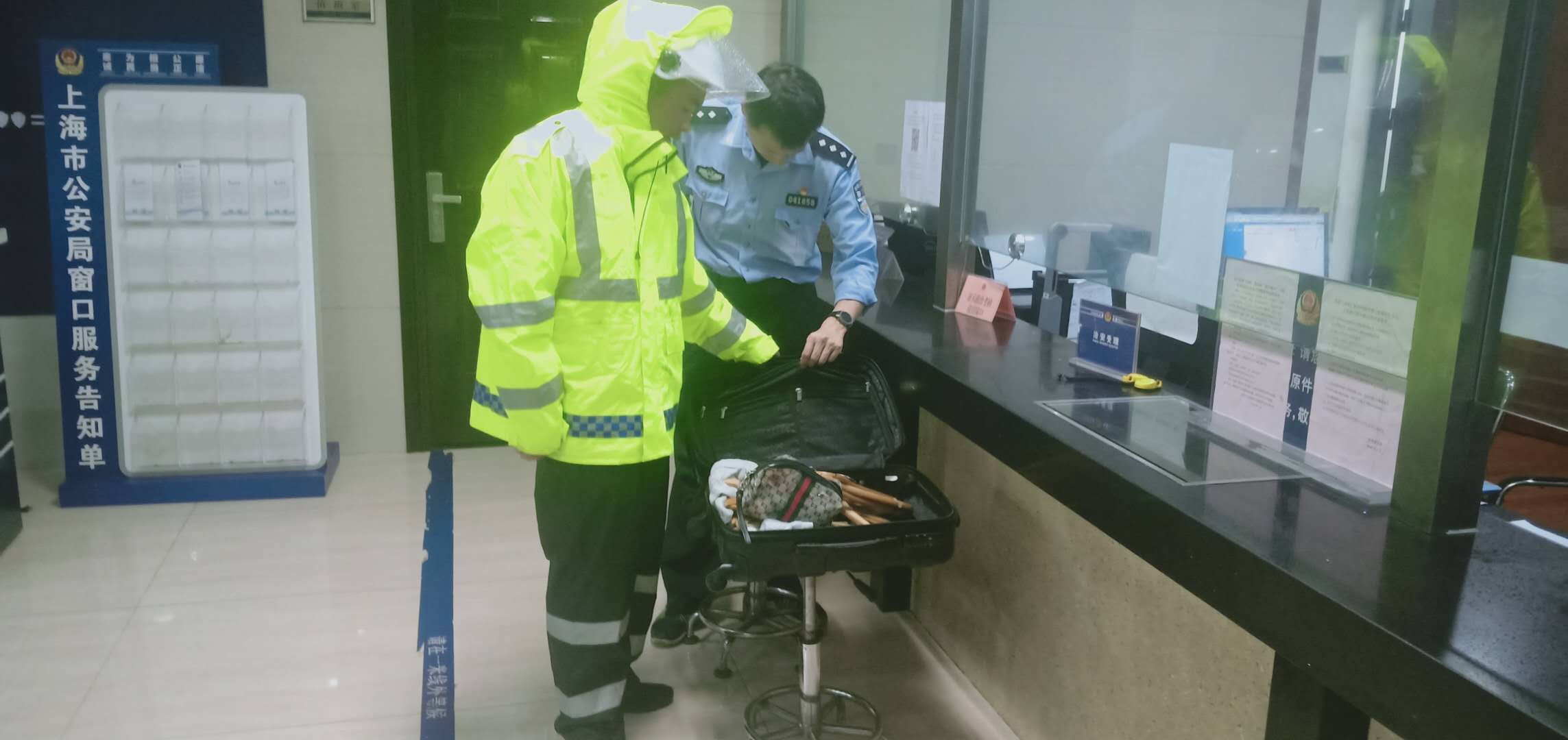 當日17:17,宗保公司駐閔行虹橋交通輔警唐信江在龍柏地鐵站5號口執勤時(shí),發(fā)現有一個(gè)黑色行李箱,無(wú)人認領(lǐng)??紤]到丟失箱子人的焦急心情,唐信江就在地鐵站口一邊執勤一邊等待失主,但直到下班也沒(méi)有等到有人前來(lái)認領(lǐng)。于是,唐信江將行李箱送到虹橋派出所,交給了當班民警處理。