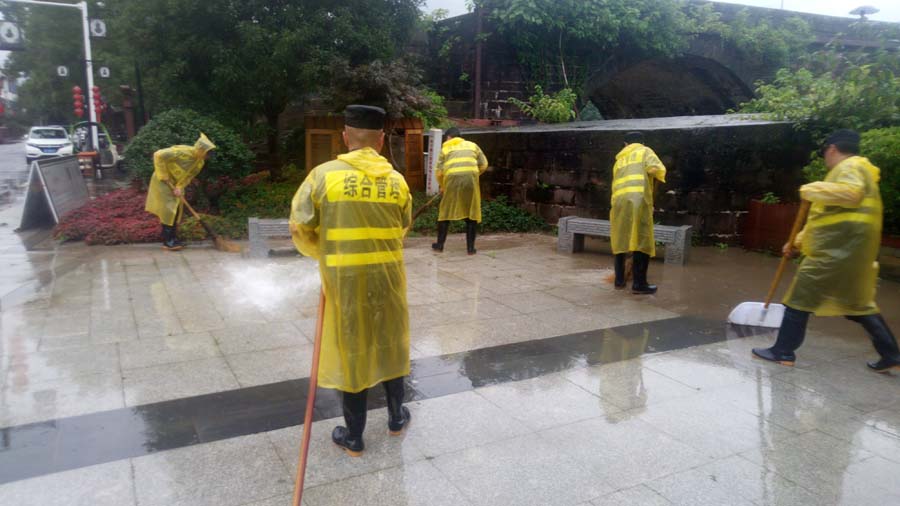 2020年7月7日,黃山休寧齊云山鎮遭遇罕見(jiàn)特大暴雨,水位暴漲,轄區內多處受淹。公司駐休寧縣齊云山鎮市容項目隊員積極響應鎮政府號召,配合鎮干部在完成疏導交通、轉移群眾、搶救物資、運送人員等急難險重任務(wù)中發(fā)揮了重要作用。