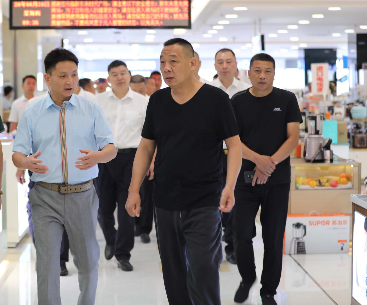 20日9:30左右,宗保公司一行人員乘車(chē)來(lái)到胖東來(lái)時(shí)代廣場(chǎng)。董事長(cháng)于東來(lái)等人等在門(mén)口,親自接待,令參觀(guān)學(xué)習人員十分感動(dòng)。