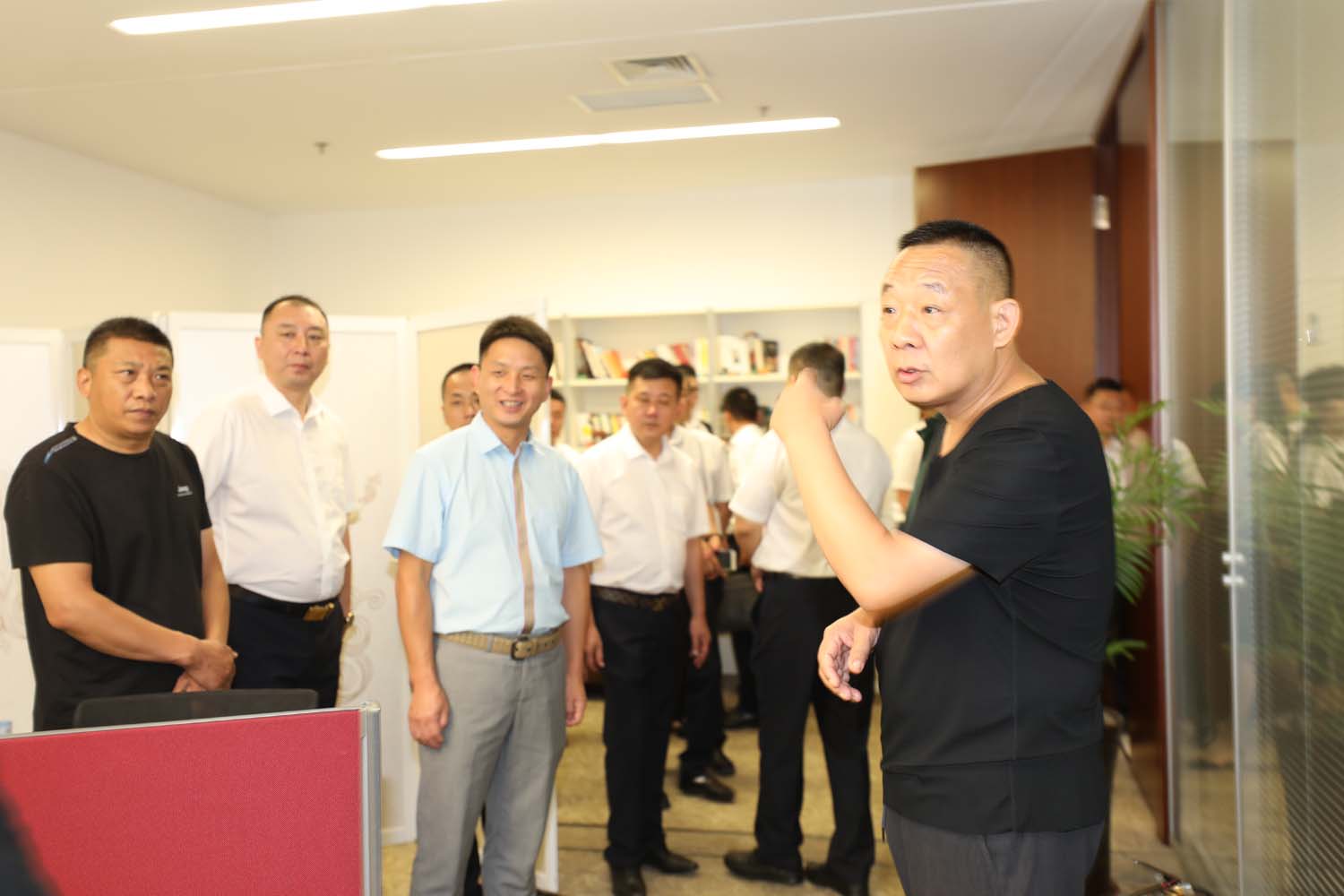 于董事長(cháng)陪同宗保公司一行邊參觀(guān)邊介紹,路過(guò)的市民不停地向于董事長(cháng)揮手問(wèn)好,于董事長(cháng)一一回應。