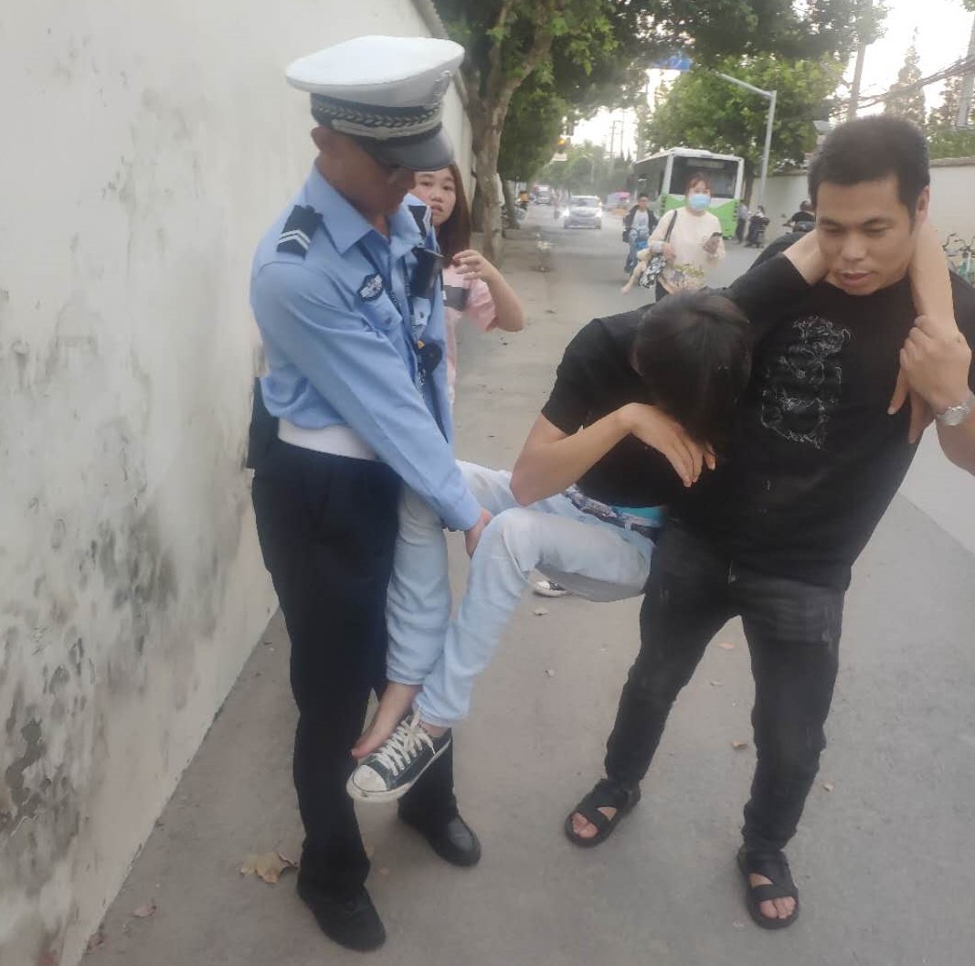 當日8:00左右,羊昱翰執勤時(shí),發(fā)現一男子躺倒在路邊,就立刻跑過(guò)去察看情況。該男子疑似飲酒過(guò)量,醉倒在路邊,身體無(wú)傷痕羊昱翰隨即將情況報告組長(cháng),呼叫支援。因擔心該男子躺在路邊發(fā)生意外,便將其搬到安全地帶等待支援。