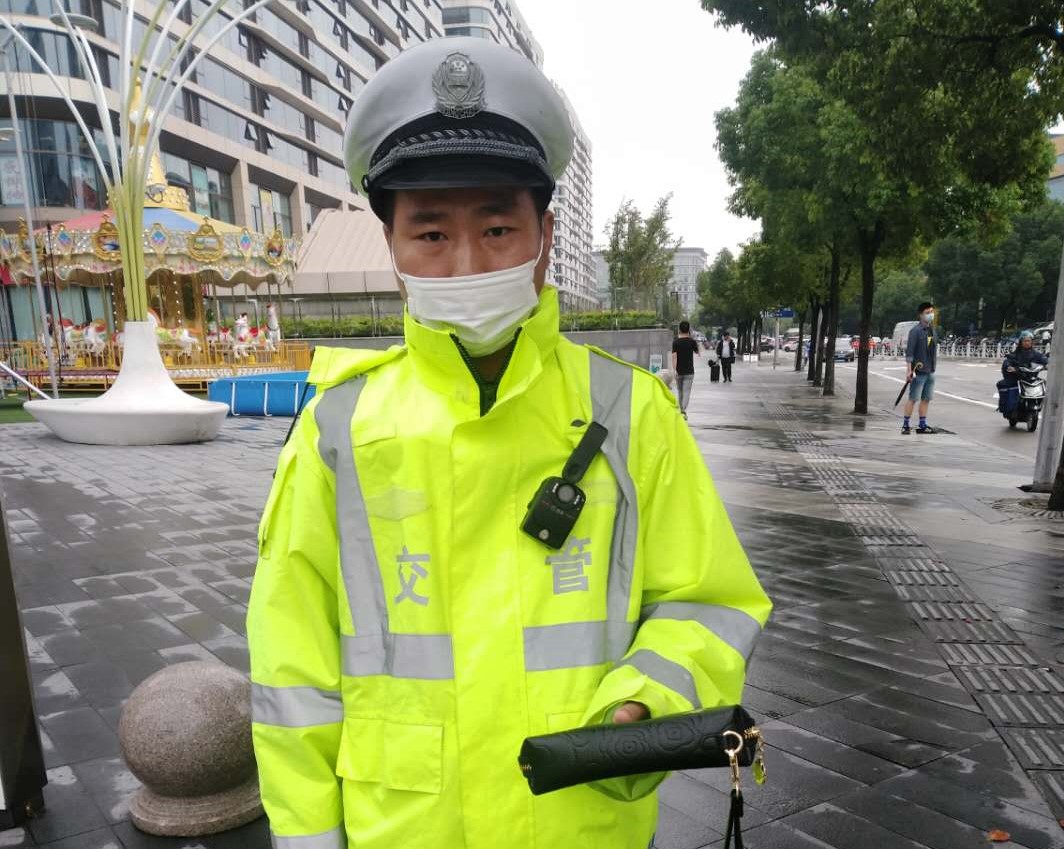 9月18日,閔行虹橋交管輔警項目隊員馮琳琳撿到黑色皮包歸還失主,獲得贊揚。