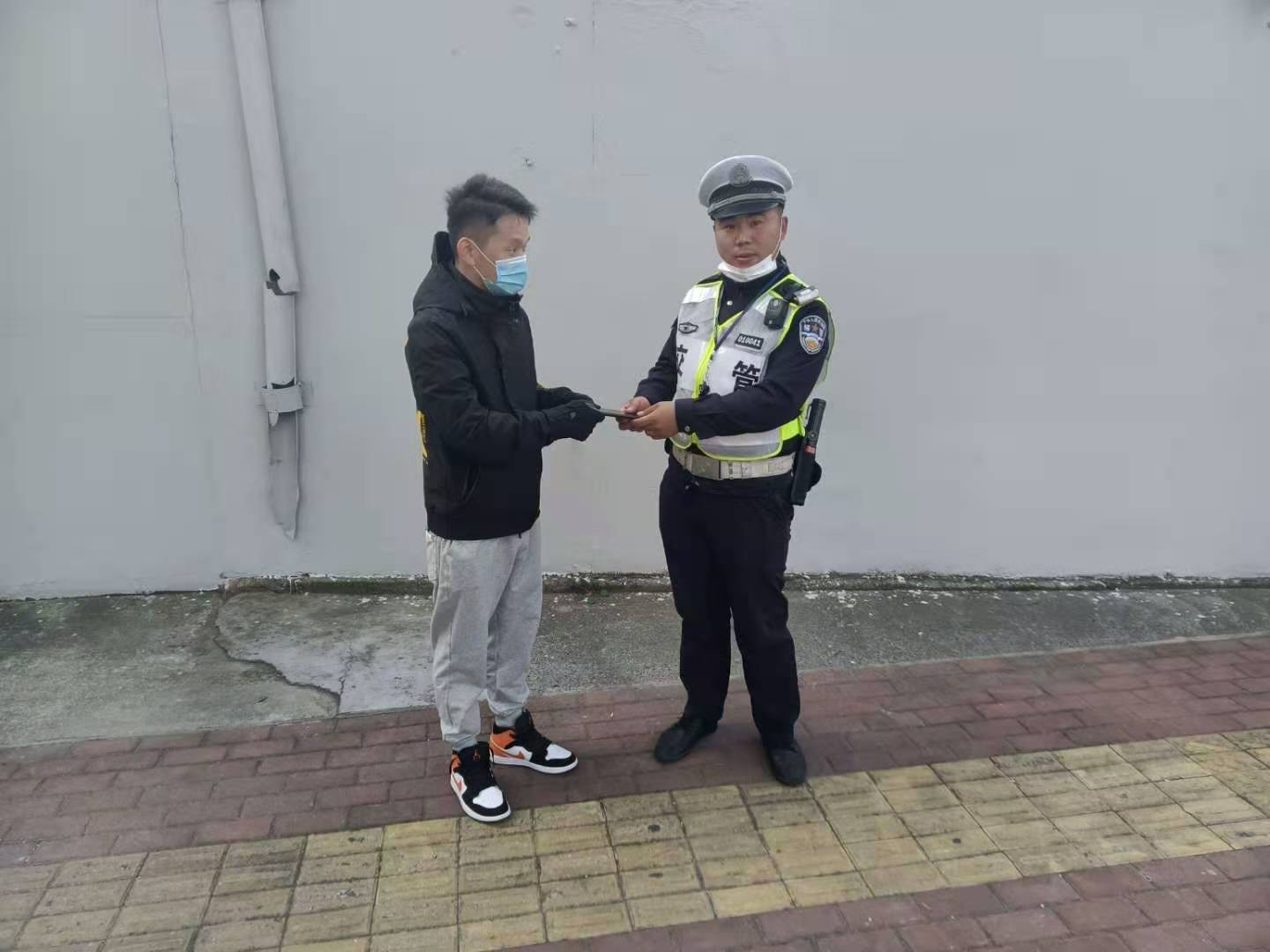 15分鐘后,一男子匆匆趕到現場(chǎng)。經(jīng)核對確認,隊員將手機歸還失主,失主對宗保輔警隊員拾金不昧的行為一再表示感謝。